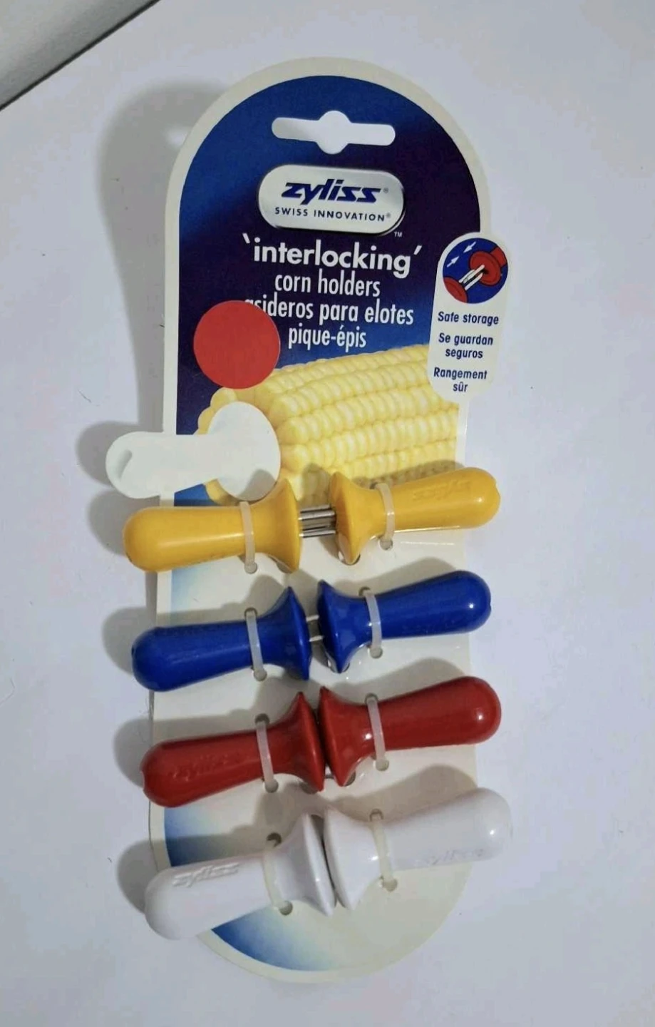 These are perfect for enjoying corn on the cob without getting your hands messy. The package includes four pairs of colourful corn holders (red, blue, yellow, and white). They are stainless steel and comfortable to hold. Plus, they interlock for safe and easy storage.