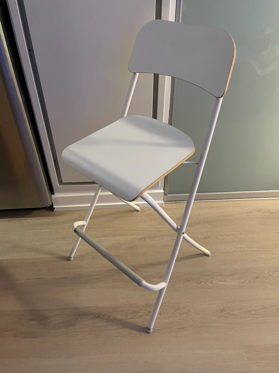 Selling a white IKEA Franklin bar stool! It's in great shape and perfect for adding extra seating to your kitchen or bar area. It's foldable, so it's easy to store when not in use. It's super handy for small spaces! Pick up Liberty Village.