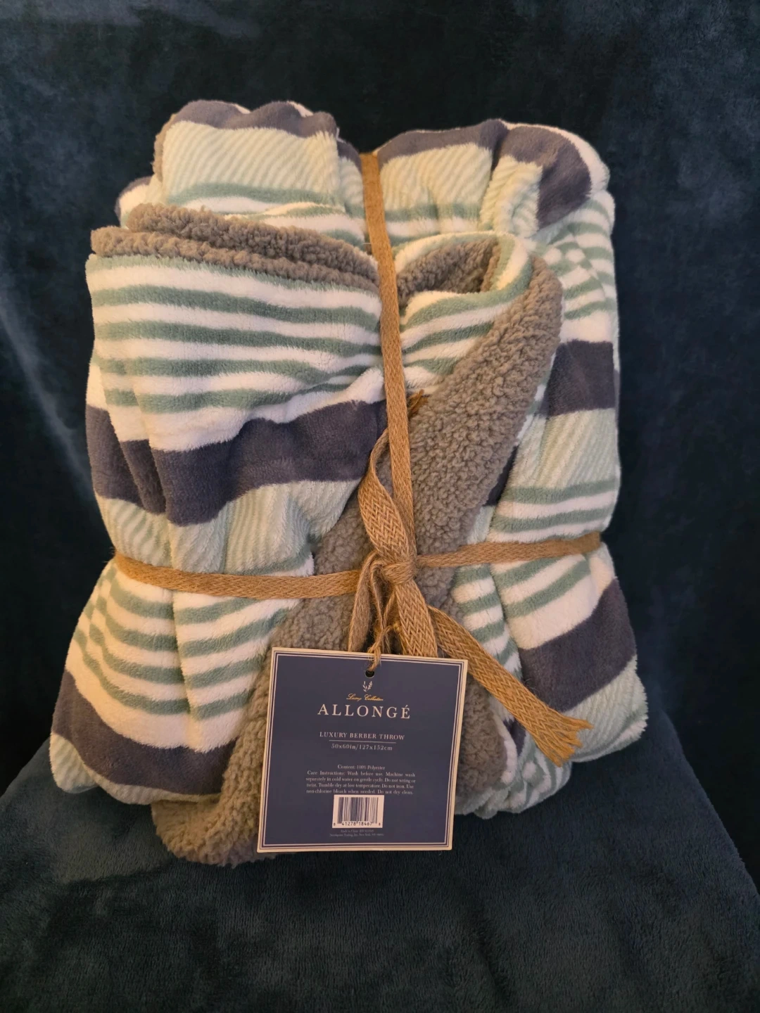 Snuggle up with this Allongé Luxury Berber Throw! It's brand new and still tied with the original twine. The throw measures 50x60 inches (127x152cm) and is made of 100% polyester. Perfect for cozying up on the couch during these chilly evenings!