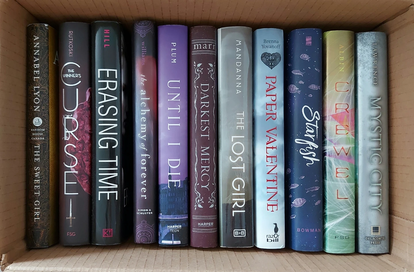 Includes 'The Sweet Girl', 'The Winner's Curse', 'Erasing Time', 'The Alchemy of Forever', 'Until I Die', 'Darkest Mercy', 'The Lost Girl', 'Paper Valentine', 'Starfish', 'Cruel', and 'Mystic City'. These are hardcover books perfect for young adult readers.