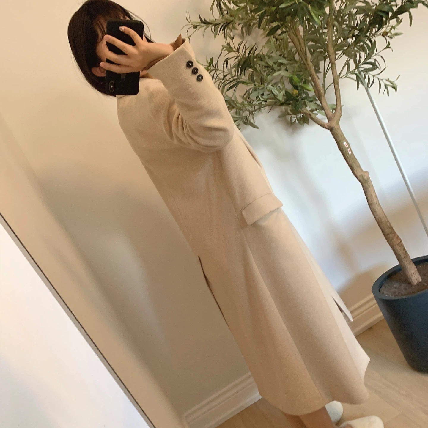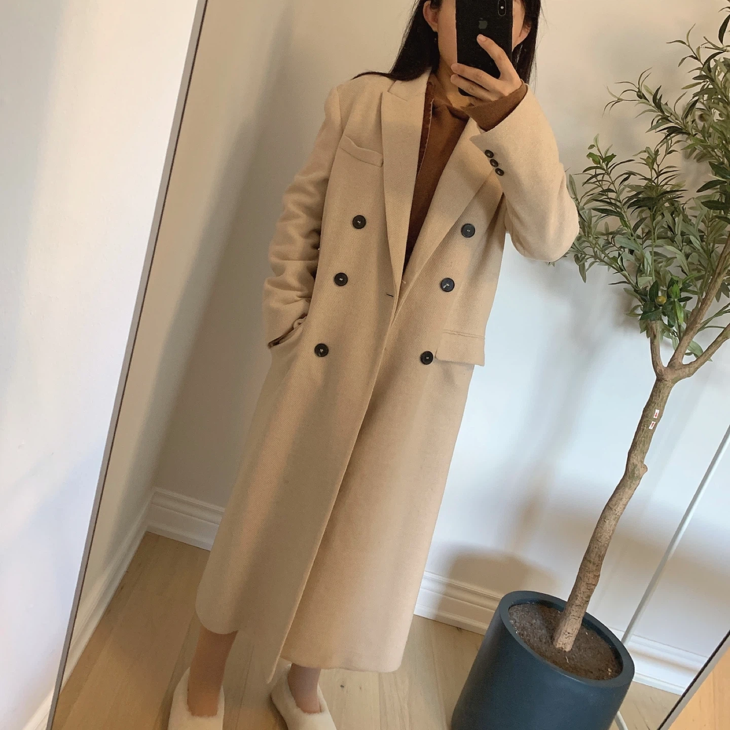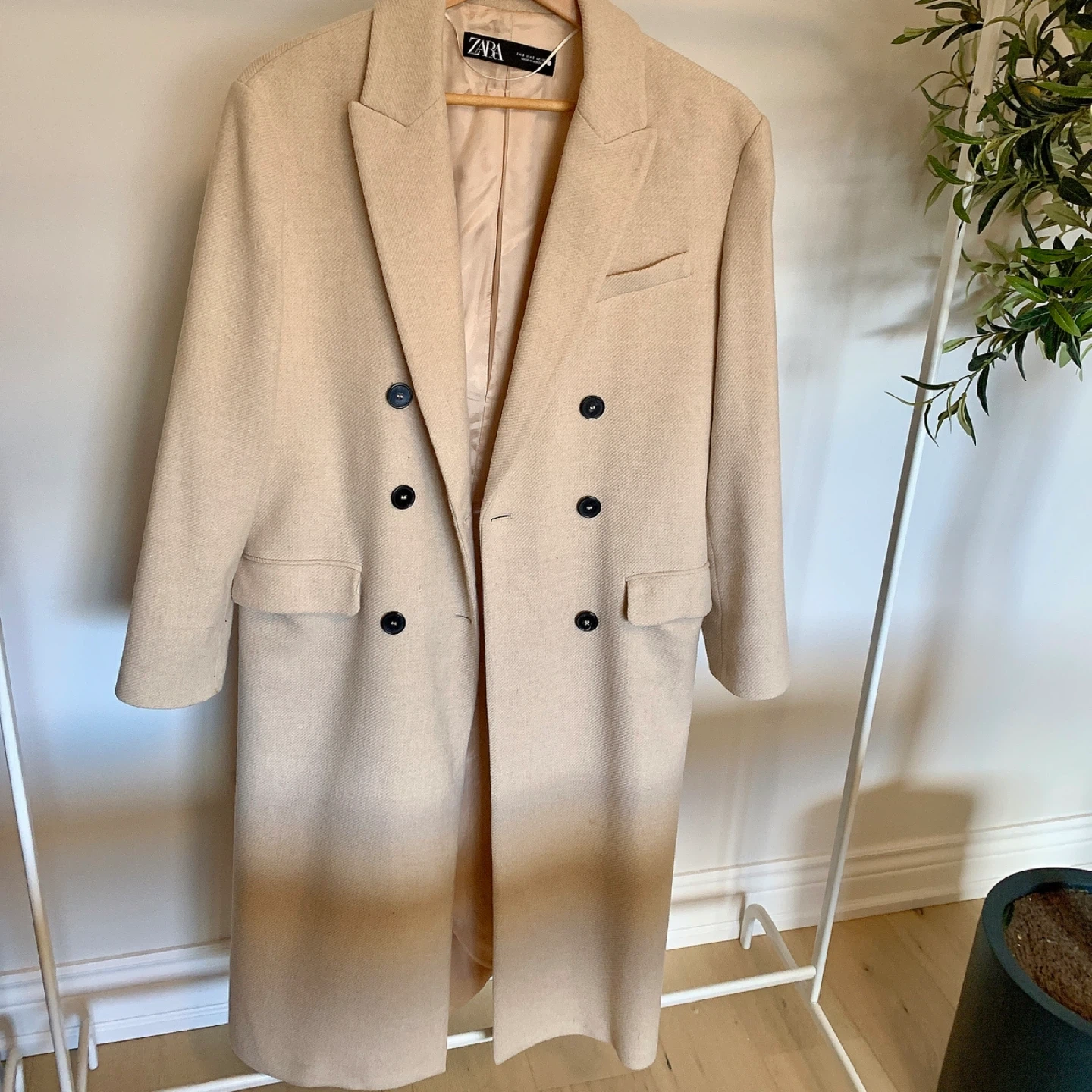 ZARA Long Oatmeal Coat Size S Elegant Work Casual