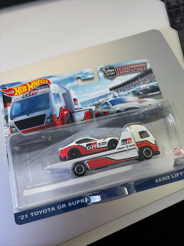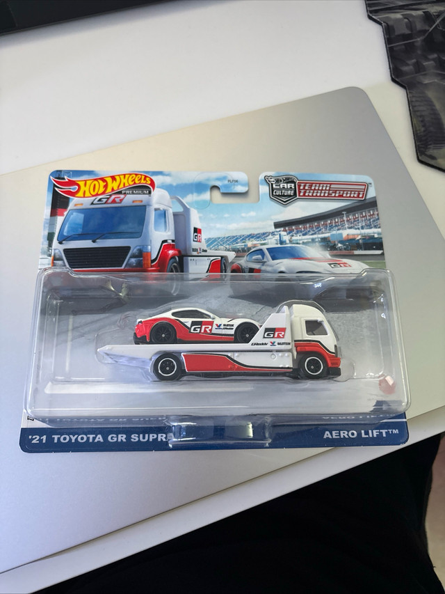 I'm offering a Hot Wheels Premium Car Culture Team Transport '21 Toyota GR Supra Aero Lift, a highly sought-after collectible for diecast car enthusiasts! This car is brand new, still sealed in its original packaging, and in mint condition. It would make a stellar addition to any collection, or a great gift for the car lover in your life! Here are some of the features: * **Car Model**: '21 Toyota GR Supra * **Transporter**: Aero Lift * **Series**: Car Culture Team Transport * **Condition**: New The market price for these seems to range quite a bit, but on average, I've seen them listed around $30-$50 CAD on Kijiji, with some outliers on either end. Given this one is in pristine condition, I'm pricing it at $40. If the ad is still up, then yes, it is still available! No need to ask, just making offers!