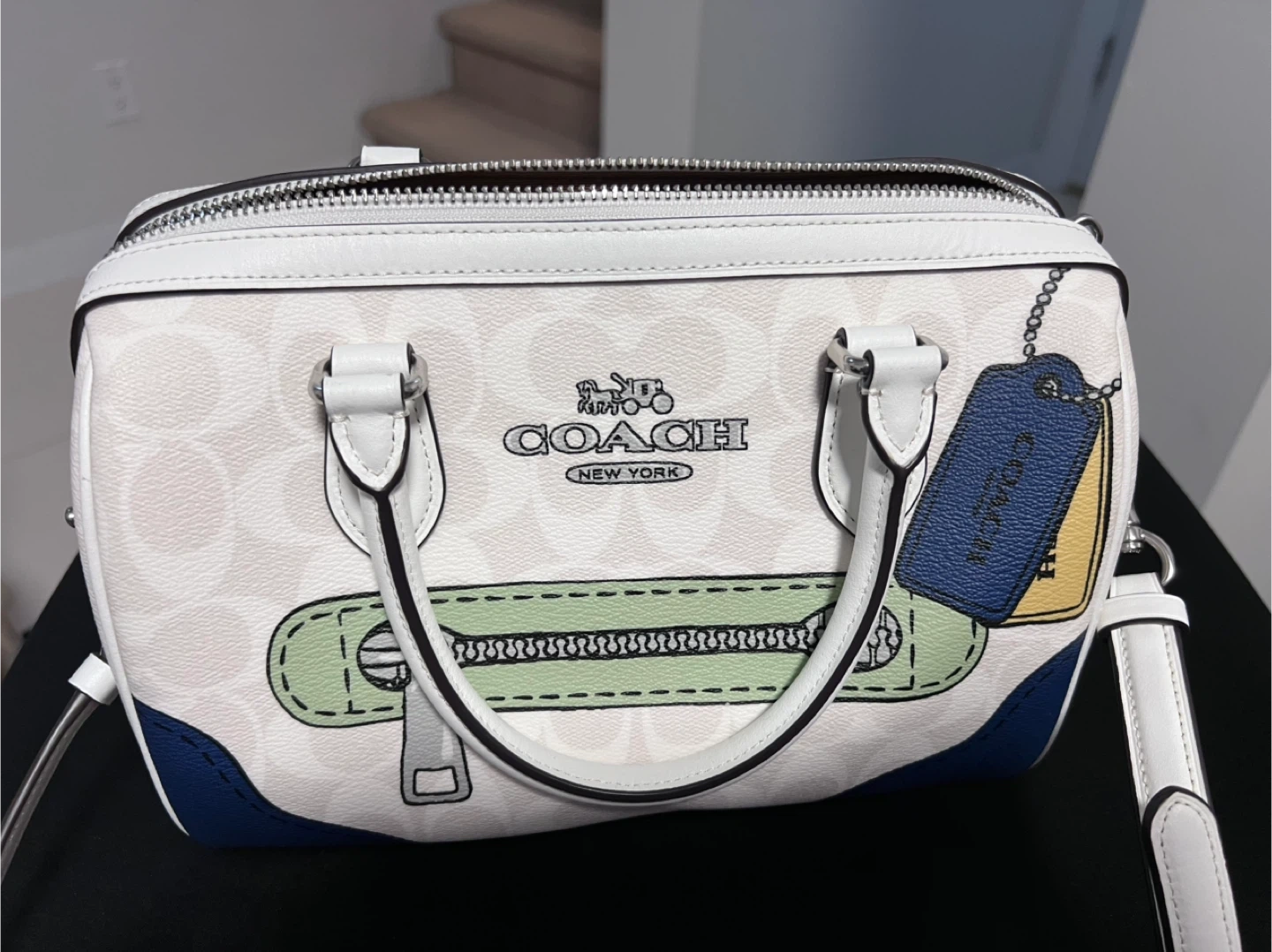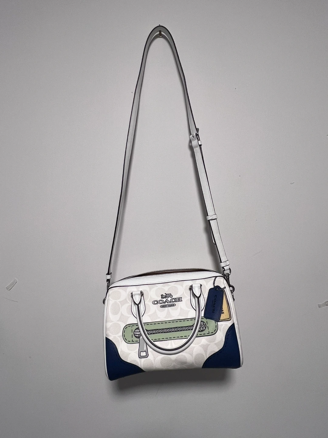 Beautiful trompe l’oeil print with signature Coach monogram canvas, eye-catching stitching and hardware details.