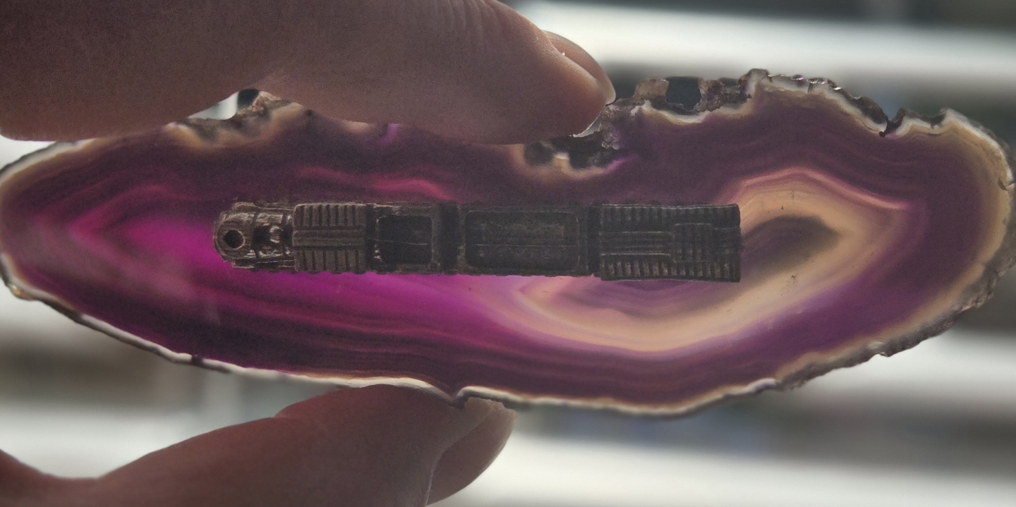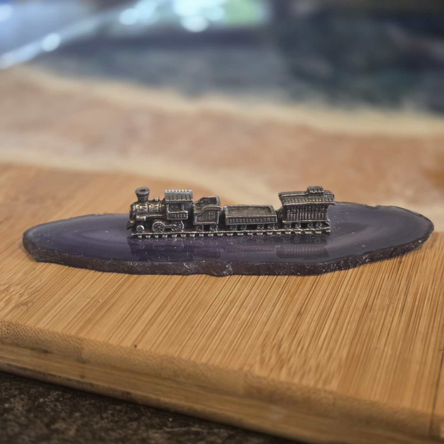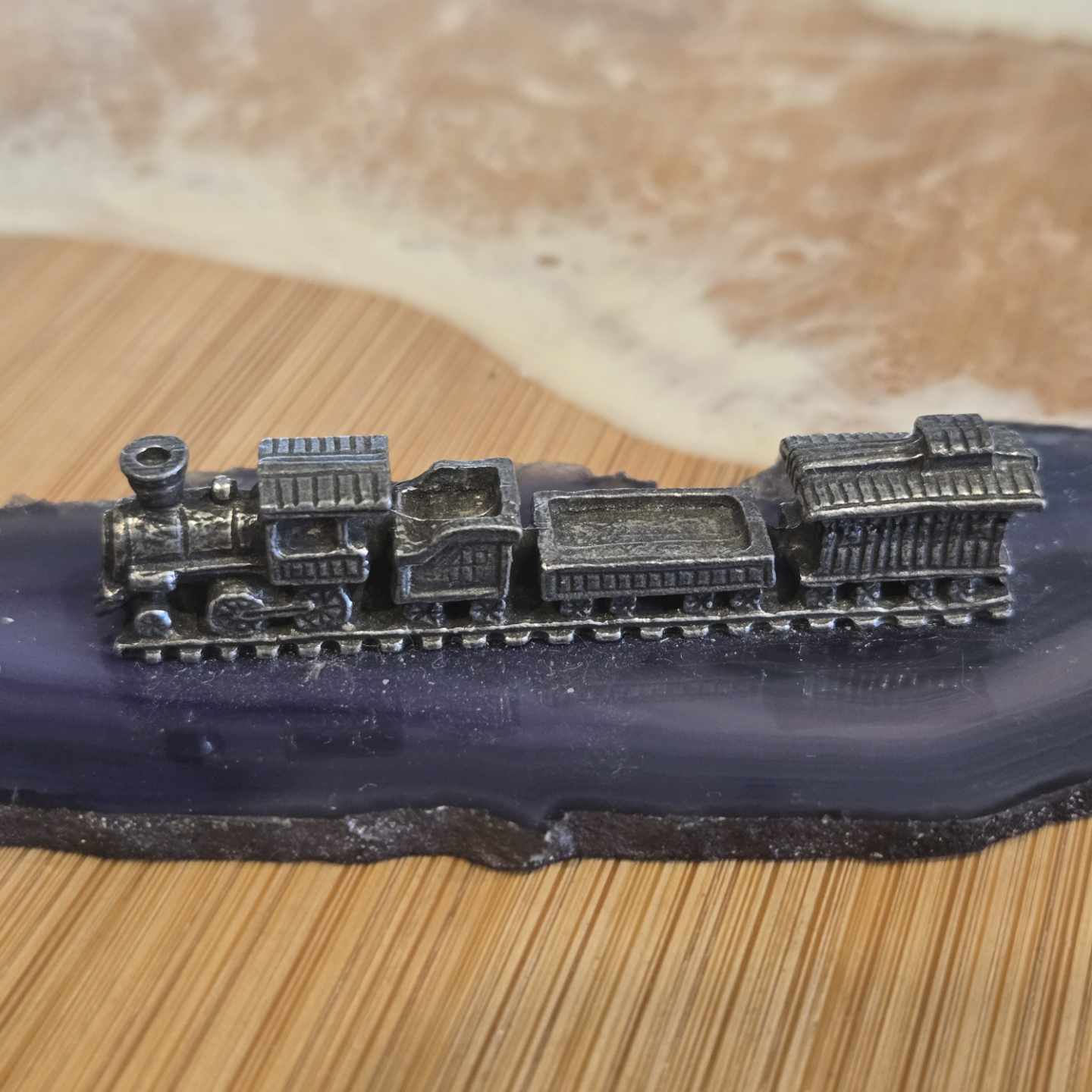 Vintage Pewter Train on Agate Slice