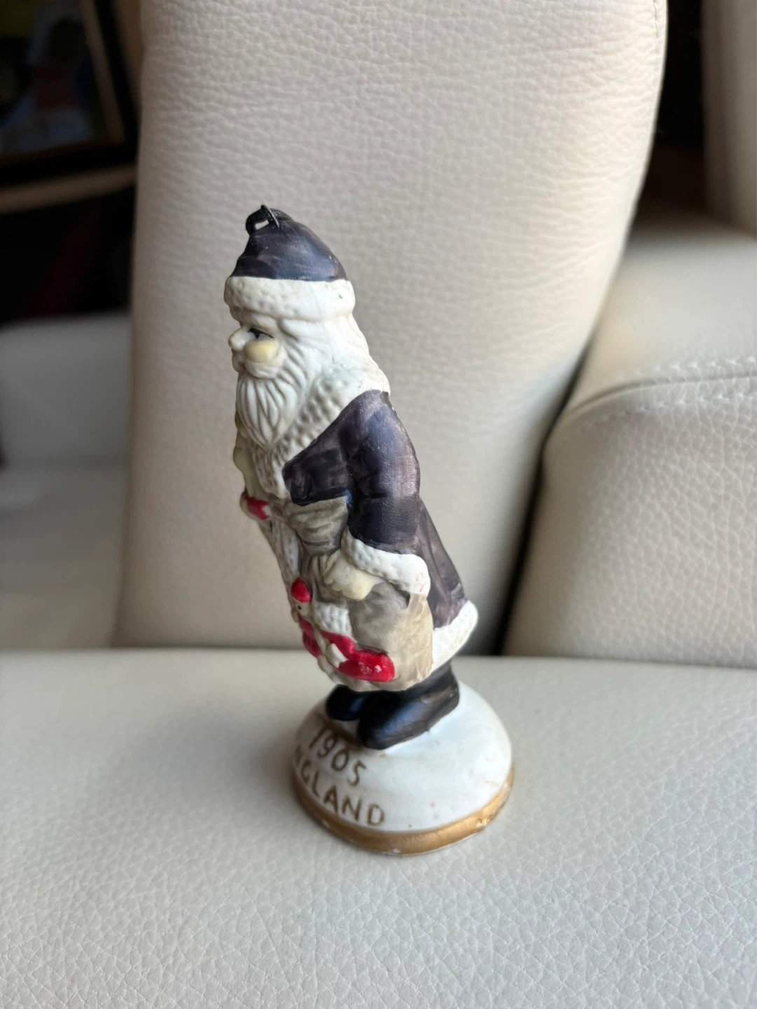 This is a Santa Claus ornament. It's dated 1905 and says England. It's made in China. Stands 5 inches.