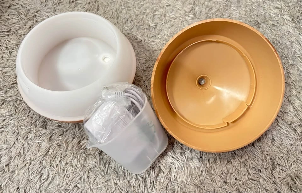 Brand new! Never used. Aromatherapy diffuser, night light, humidifier. USB powered. Elegant, ultra-quiet wood grain design. Great for living room, bedroom, or office.