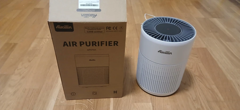 Aircilin AP070A air purifier in perfect condition. It features compact size, energy save, low noise, filter change indicator, timed shutdown, and a night light.