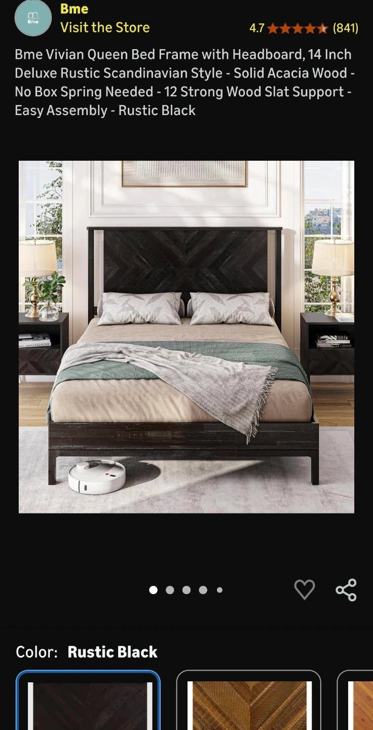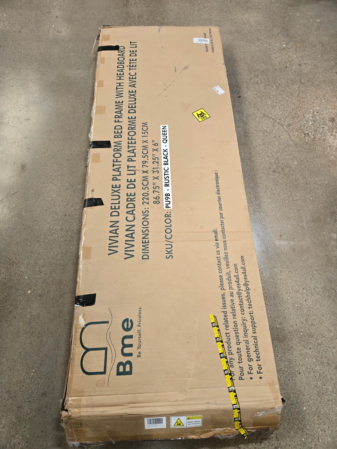 Bme Vivian Queen Bed Frame with Headboard - Rustic Black