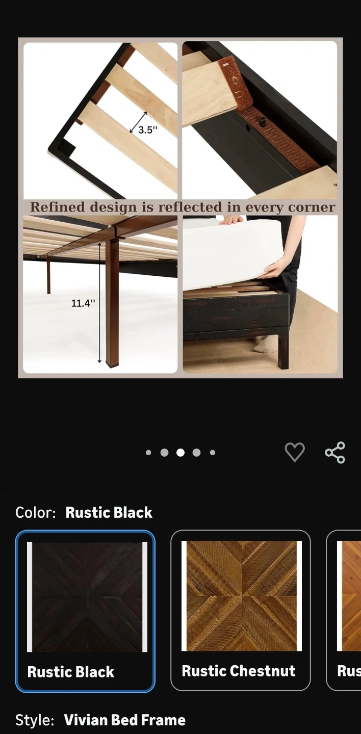 Vivian Bed Frame in Queen size with a rustic black finish. It's made of solid acacia wood and includes 12 strong wood slats for support. No box spring is needed for this platform bed frame!