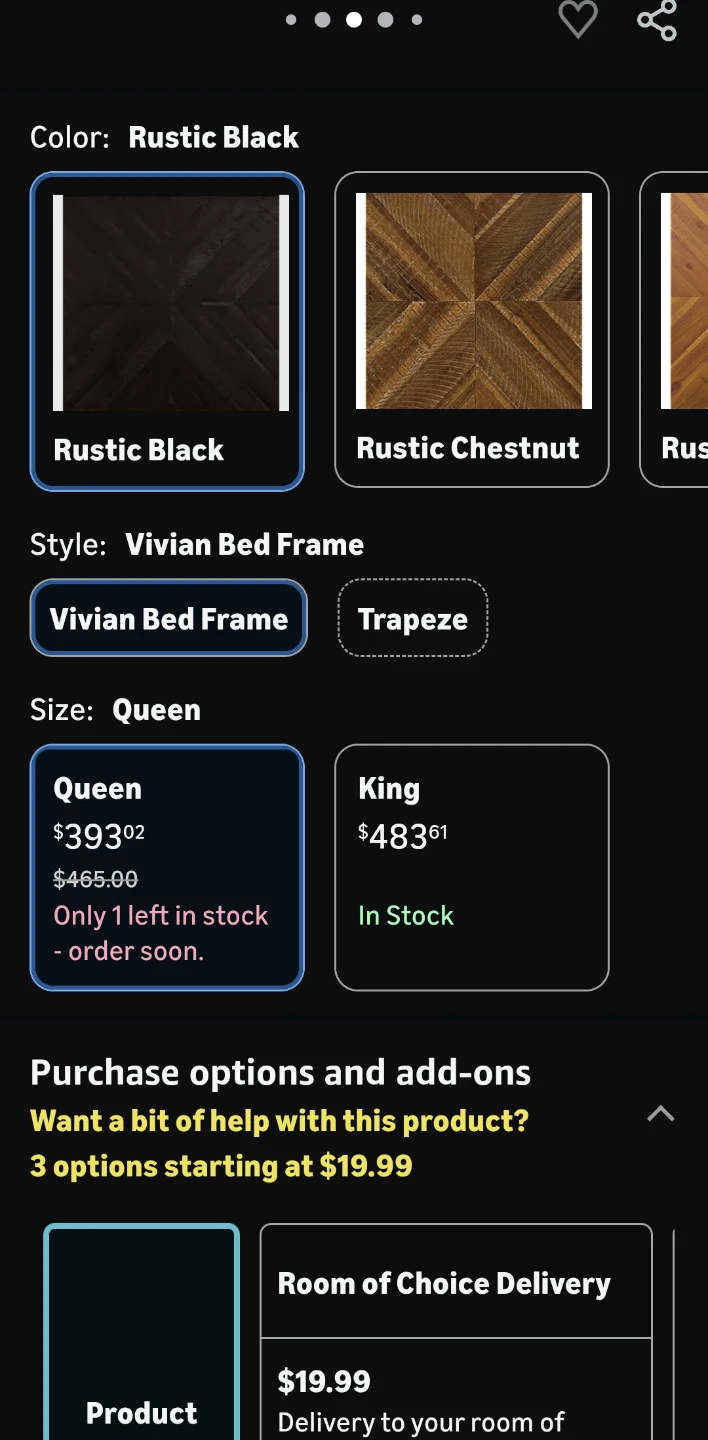Bme Vivian Queen Bed Frame with Headboard - Rustic Black