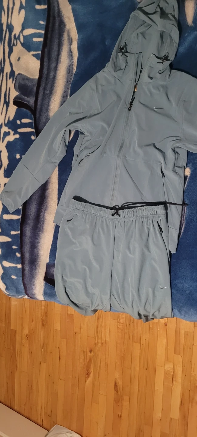 This is a Nike tracksuit set for men, featuring a hooded jacket and matching pants. It's made from a lightweight material, perfect for active use. The set includes both the jacket and the pants.