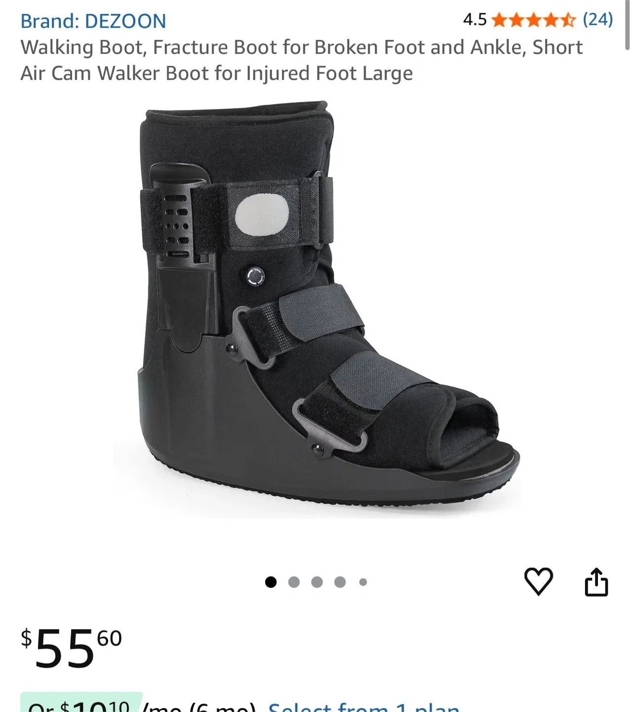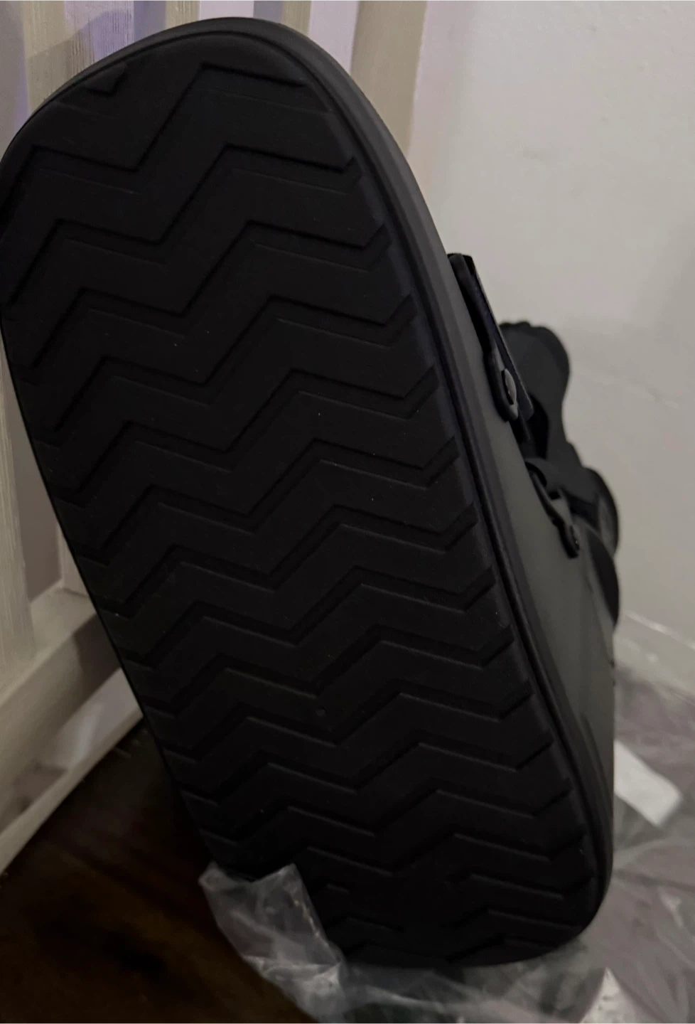 This is a black walker boot, size large. It features adjustable straps and a non-slip sole for stability. Includes application instructions.