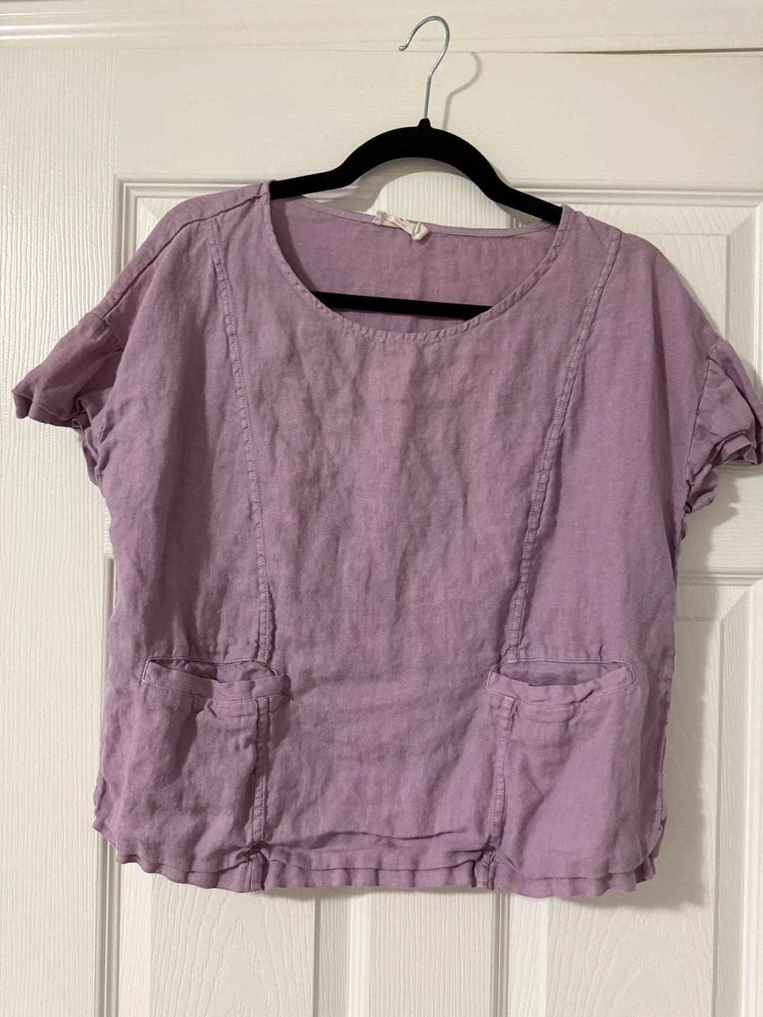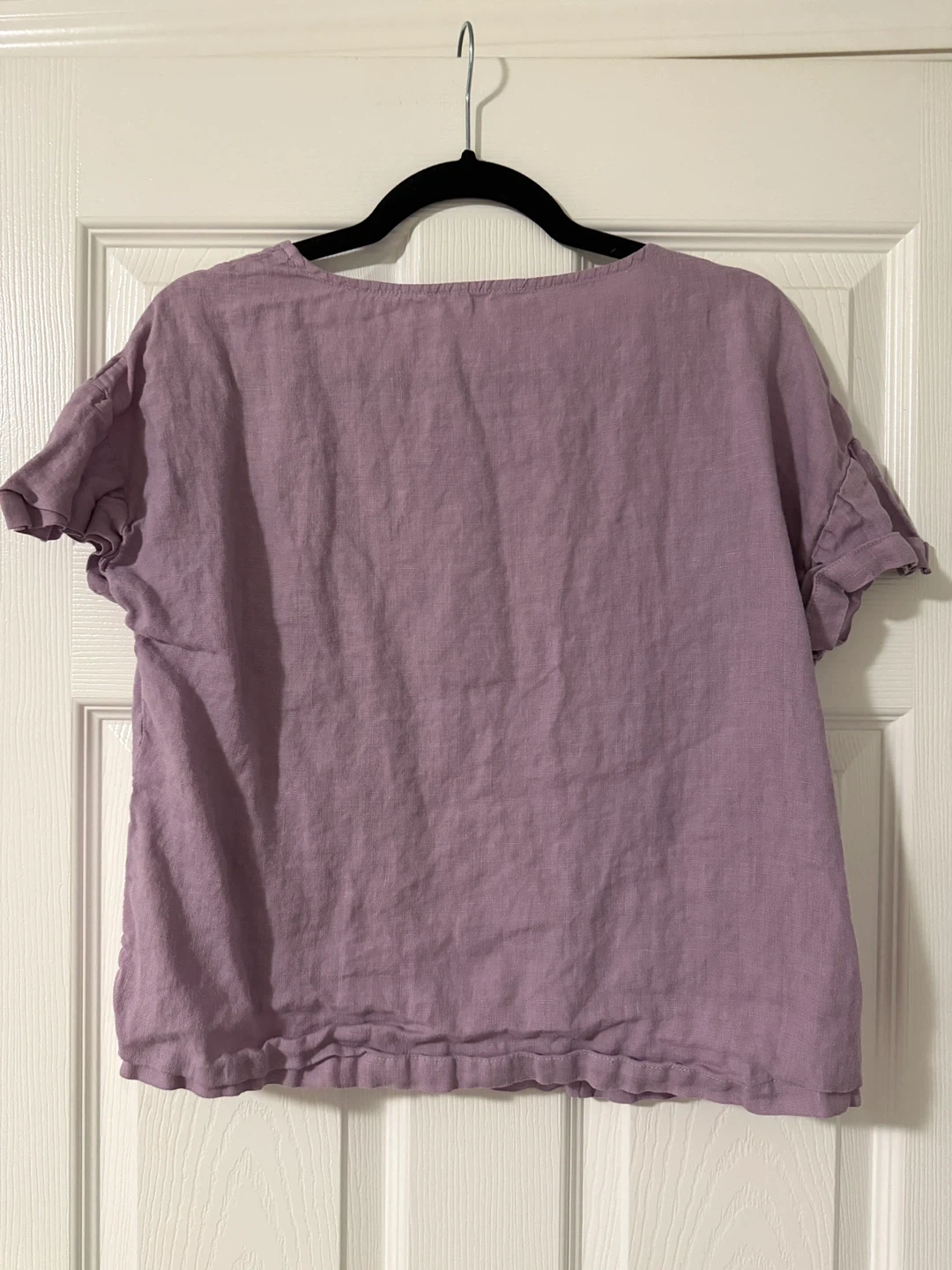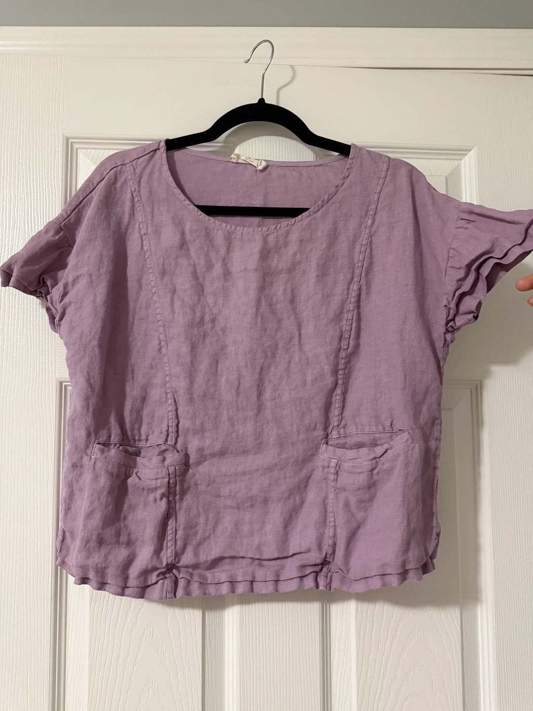 25A cute purple linen top, perfect for summer! It's a size small and in great condition. The material is nice and breathable, great for those hot days