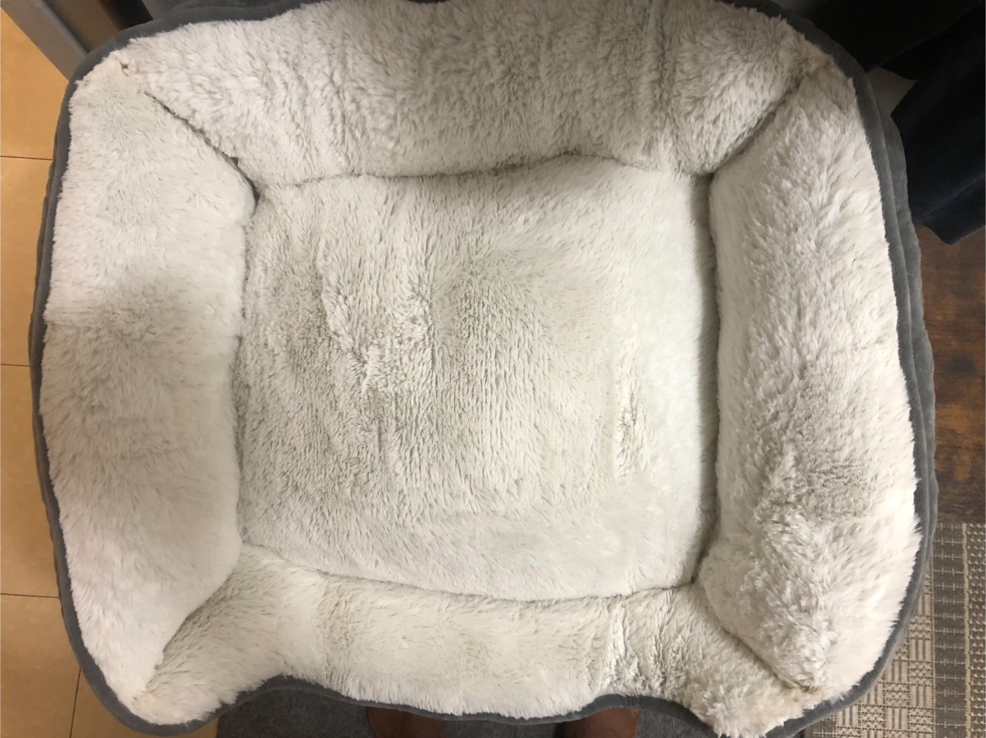 -Has a white colour on top and a grey colour at the bottom of the bed and around it
