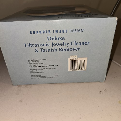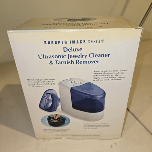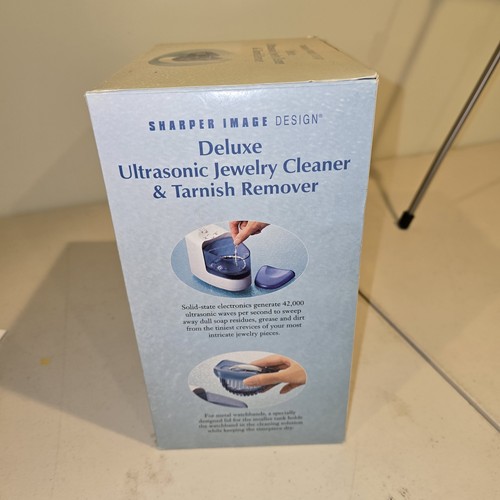 This is a brand new Sharper Image Design Ultrasonic Jewelry Cleaner. It uses sound waves to gently remove dirt and grime from your precious jewelry, helping to maintain its beauty and shine. Includes original box.