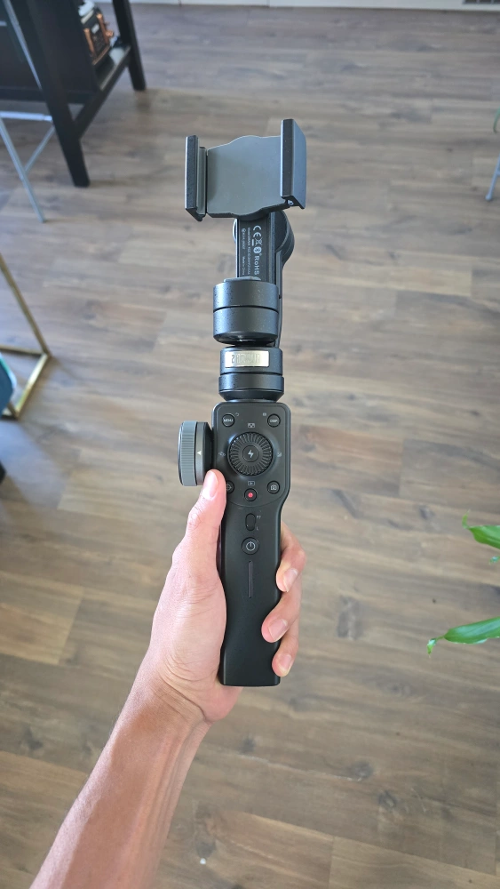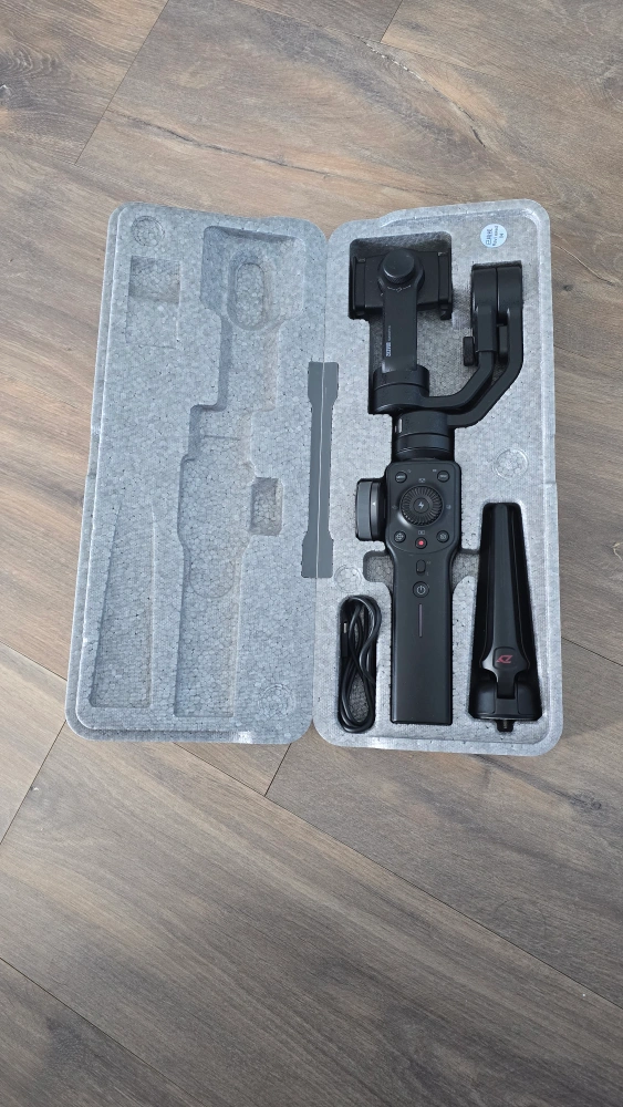 New, never used. Includes phone clamp, tripod, and charging cable.
