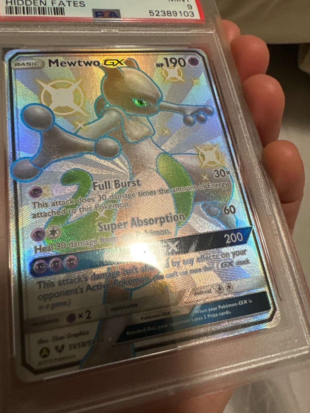 2019 Pokemon Mewtwo GX Hidden Fates FA Mint 9 PSA Graded Card