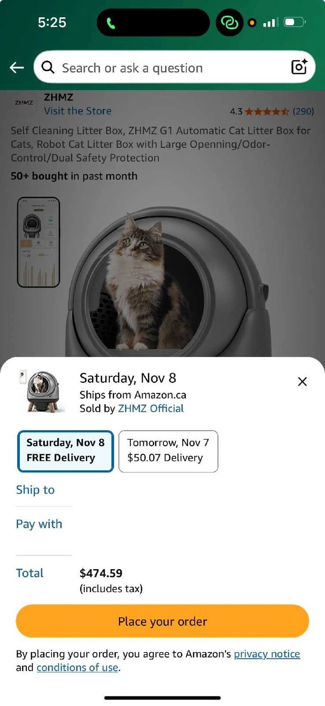 68ZHMZ G1 Smart Self-Cleaning Cat Litter Box – Grey (Slightly Used). Very Good Lightly used, minimal signs of wear, fully functional. Colour: Grey Brand: ZHMZ Size: One Size Material: Acrylonitrile Butadiene Styrene (ABS) Dimensions: 53L x 50W x 66H cm Weight: 12 kg Features: Automatic Waste Separation: Hands-free operation — automatically separates and deposits waste into a sealed drawer after each use. Premium Design: Elegant grey finish fits any home décor. Spacious 12-inch opening for easy access. Advanced Safety System: Equipped with dual infrared sensors, 4 weight sensors, and remote alerts — automatically pauses when your cat enters. Smart Control via App: Supports 2.4GHz Wi-Fi for remote monitoring and control. Manage multiple cats and modes (automatic/manual). Superior Cleaning Efficiency: Expanded mesh grid for better litter separation, anti-stick silicone cylinder, and odor-sealed waste drawer. Health Tracking: Monitor your cat’s activity and bathroom habits through the app. Bonus: Includes leak-proof mat to catch litter and reduce mess. Recommended for Cats: Weight: 2.5 – 18 lbs (1.1 – 8.2 kg) Length: under 18" (45 cm), Height: under 15" (38 cm)
