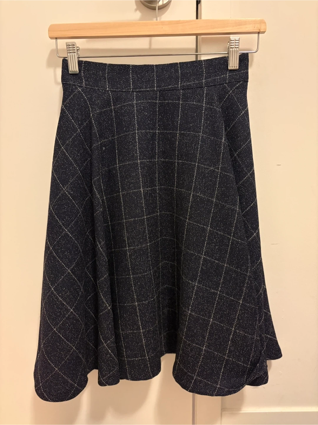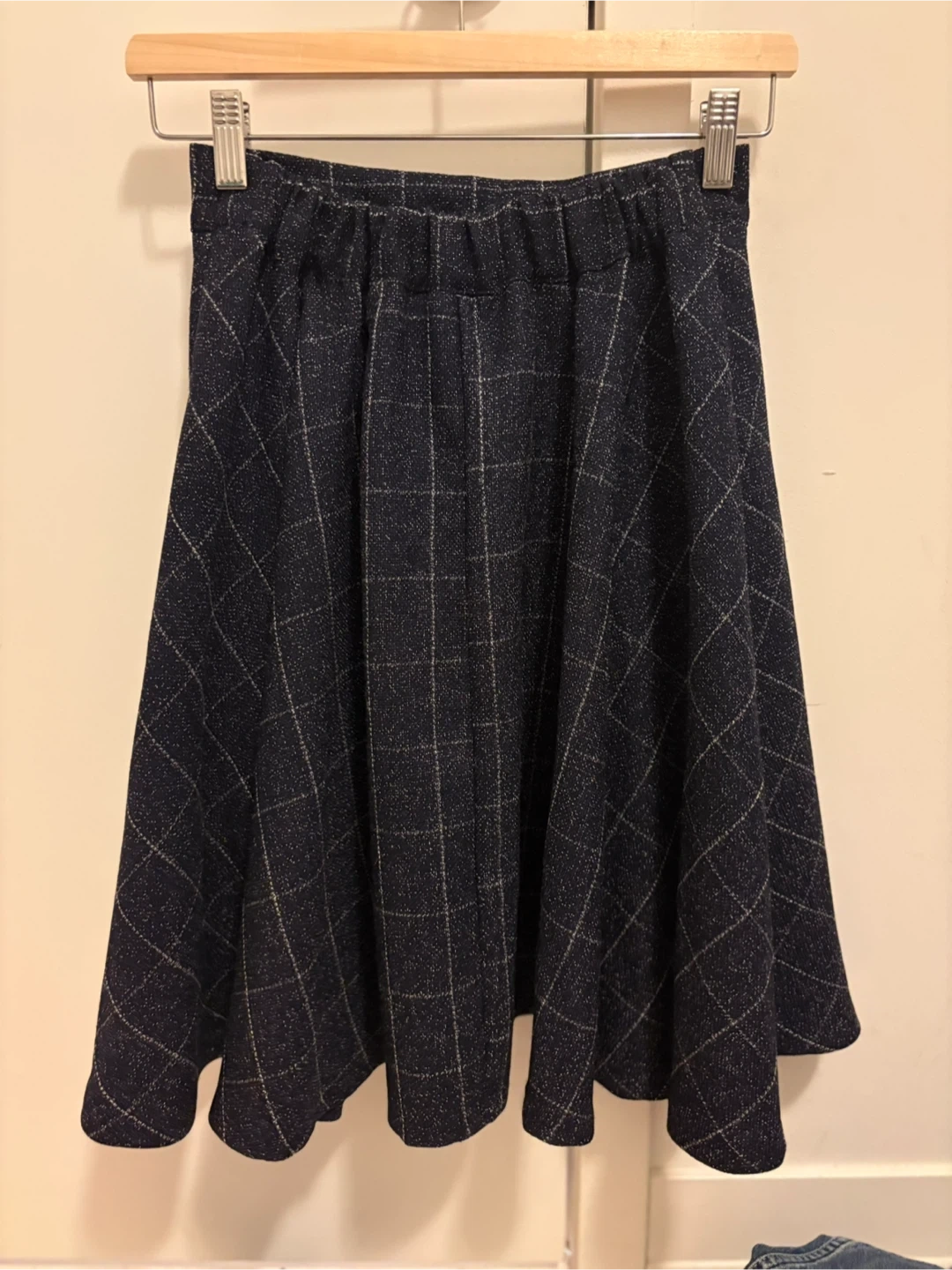 Here's a cute plaid skirt that was made in Korea! It has an elastic waistband for a comfy fit. The material feels soft and cozy, perfect for cooler weather. It's in great condition and ready for a new wardrobe