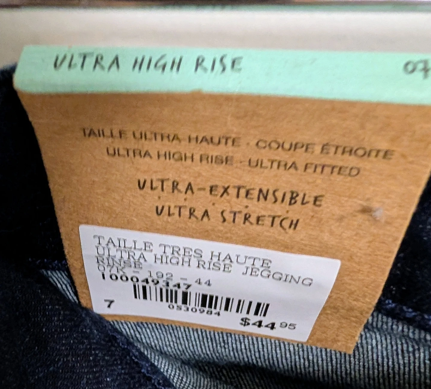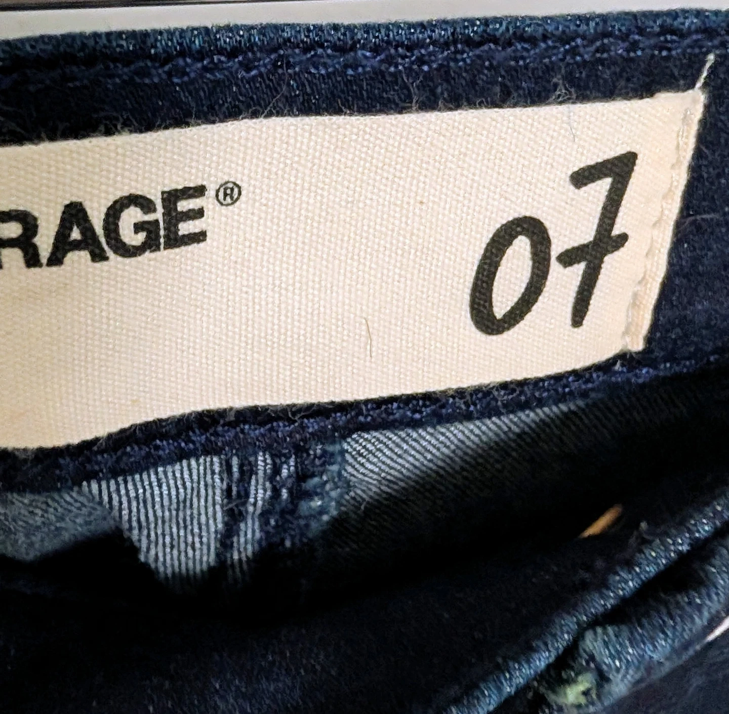 Garage dark wash denim jeans in size 07. These pants are still in their original packaging with tags attached. They're a versatile addition to any wardrobe.