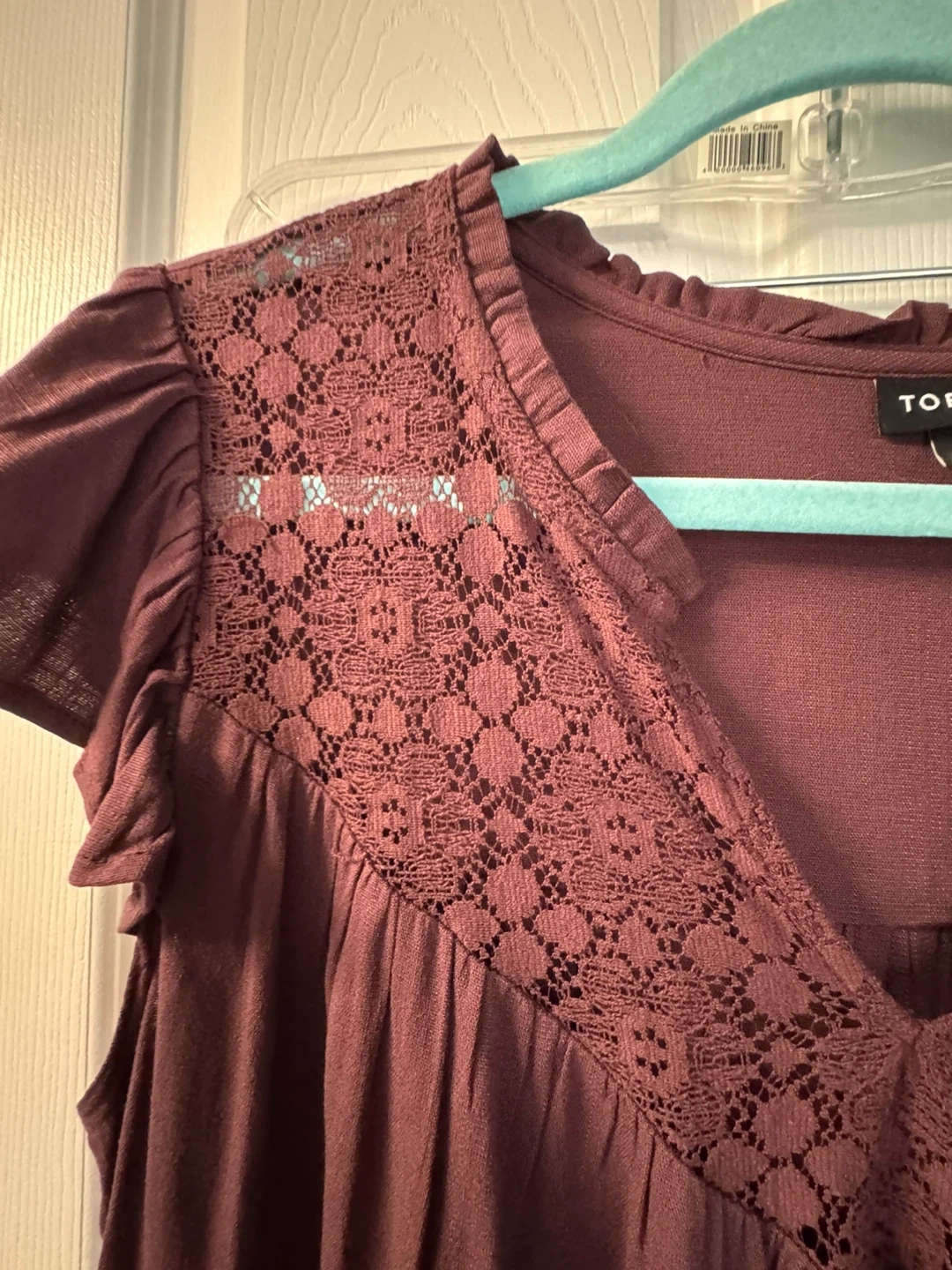 TORRID Burgundy Lace Yoke Ruffle Sleeve Dress