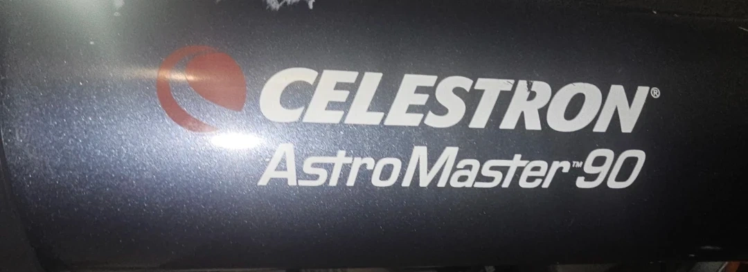 Celestron AstroMaster 90 refractor telescope on a tripod. Perfect for viewing planets and the moon. It offers bright, clear views for both terrestrial and celestial objects.