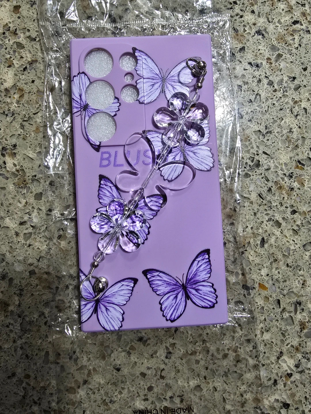 Purple Butterfly Phone Case with Charm Samsung galaxy s24 ultra