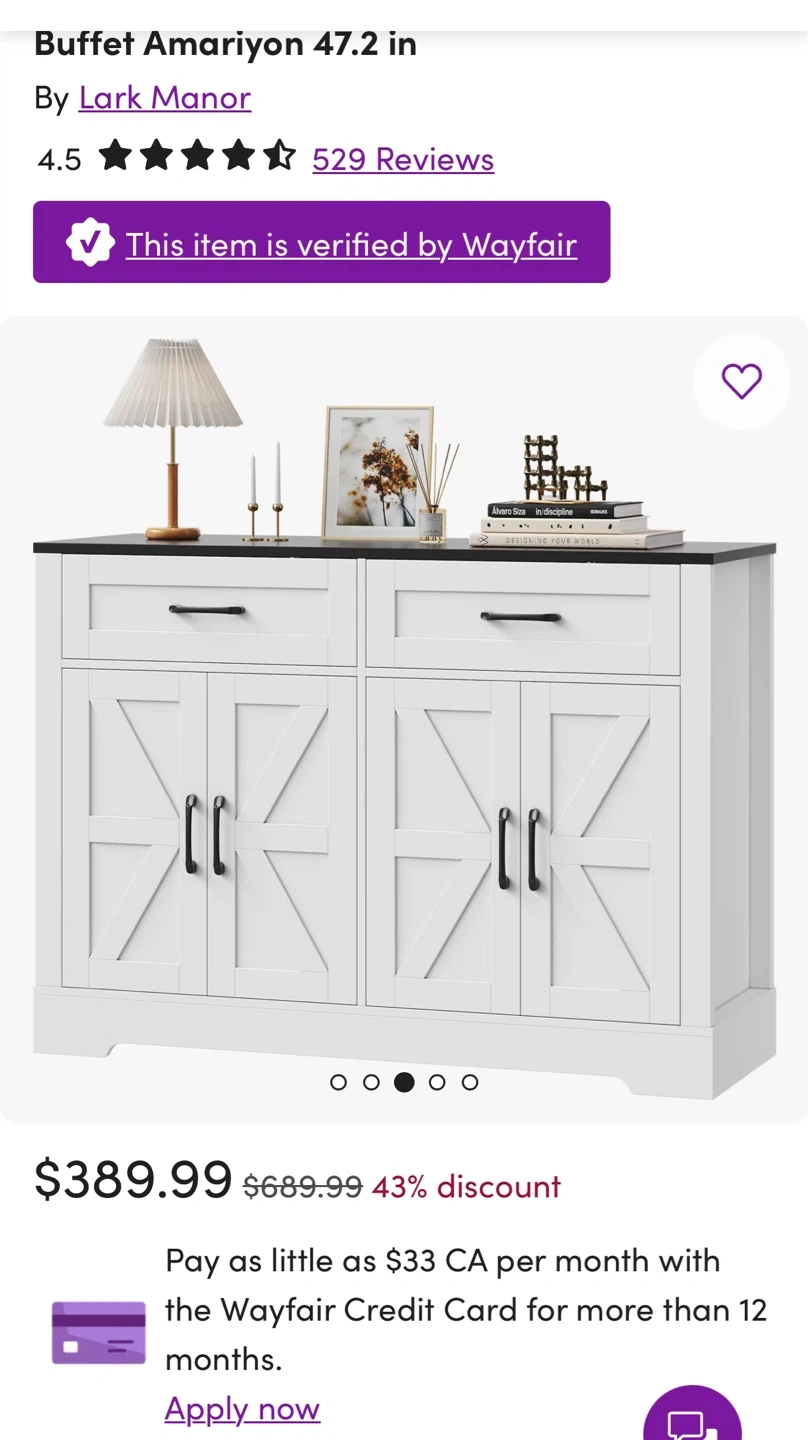 Black and white Sideboard storage cabinet-47.2 inches - AS IS
