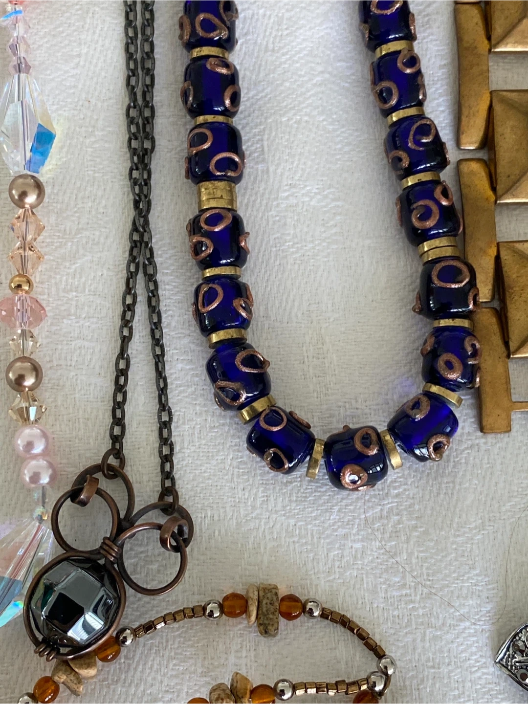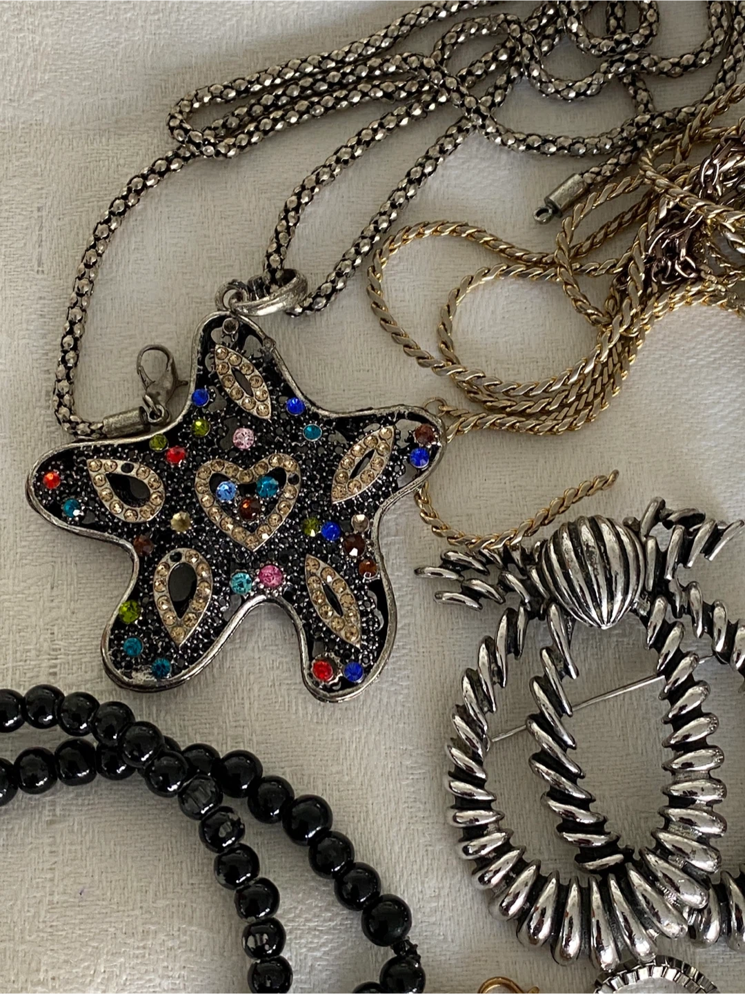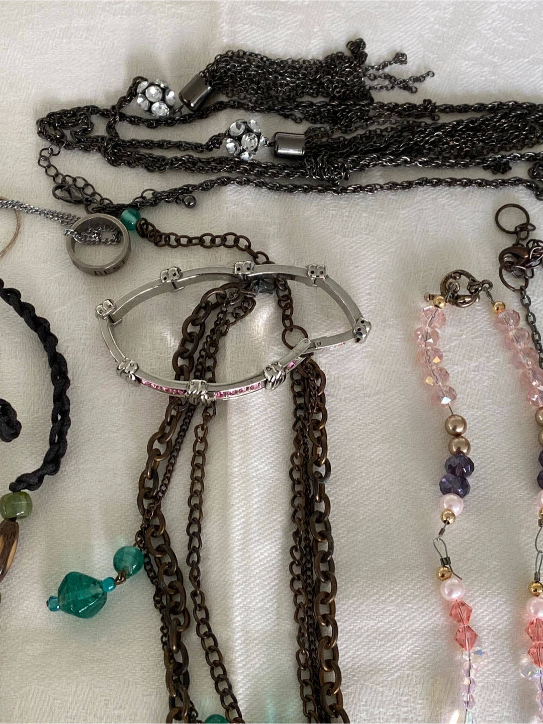 Selling a large lot of assorted costume jewellery. Includes necklaces and other pieces in various styles and materials. All pieces are in good condition.