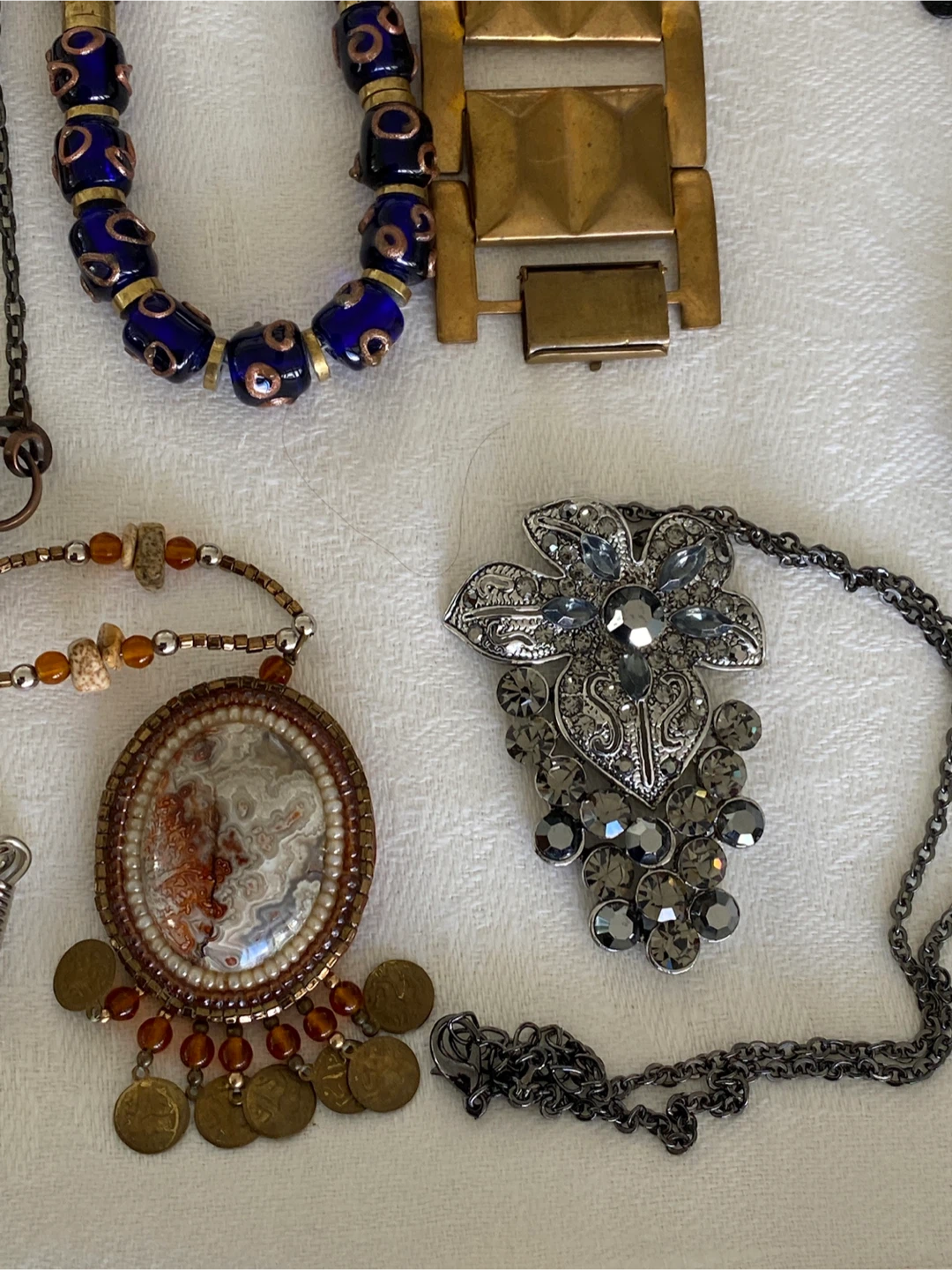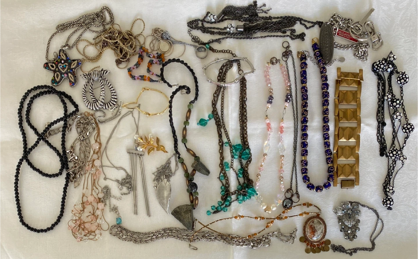 Selling a large lot of assorted costume jewellery. Includes necklaces and other pieces in various styles and materials. All pieces are in good condition.
