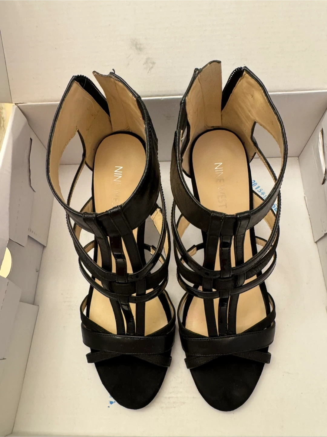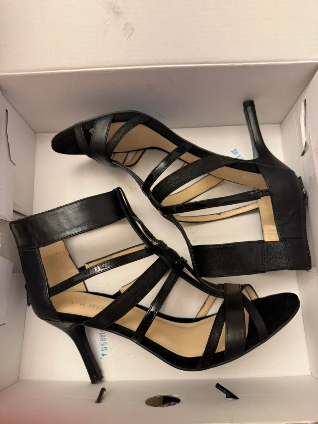 Selling a pair of Nine West black heels in size 8.5. These stylish heels come with their original box and feature a leather/man-made upper and man-made lining. Perfect for a night out or special occasion!