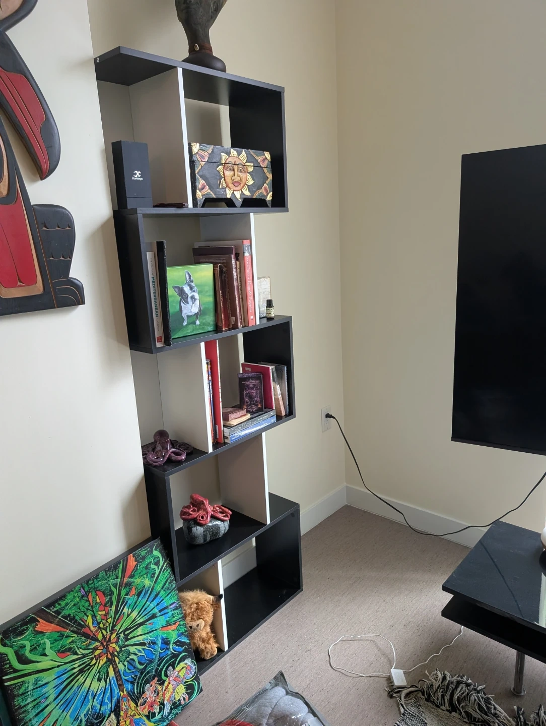 Two bookcases. Measurements in photo. I've had them 3 months and as you can see I use for stuff. Stuff not included but I am selling some of it.