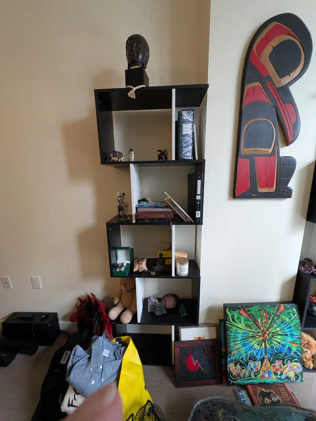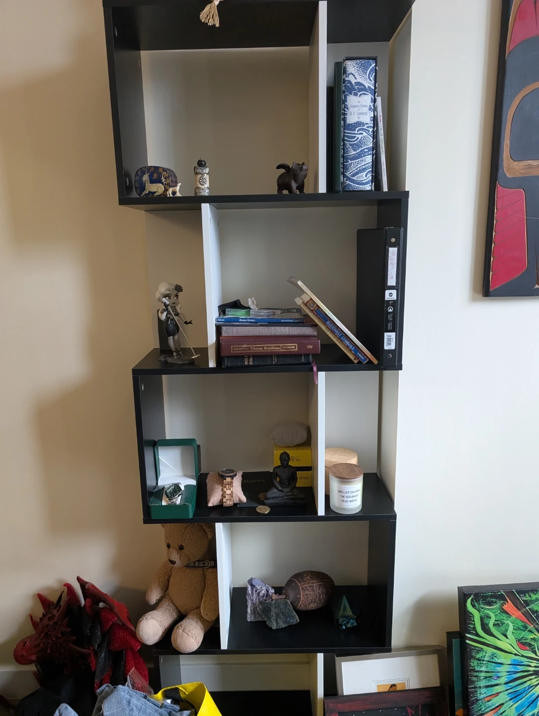 Two bookcases. Measurements in photo. I've had them 3 months and as you can see I use for stuff. Stuff not included but I am selling some of it.