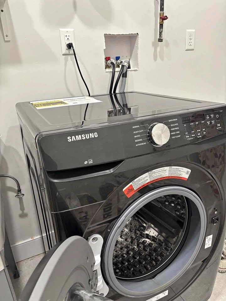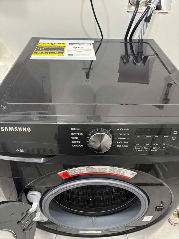 Samsung front-load washing machine in excellent condition. Lightly used and very clean inside and out. Works perfectly with multiple wash settings including: Normal, Heavy Duty, Whites, Bedding, Quick Wash, Delicates, and Self Clean. Features a large capacity stainless steel drum. No issues, works great and has been well maintained. Selling because I'm moving.