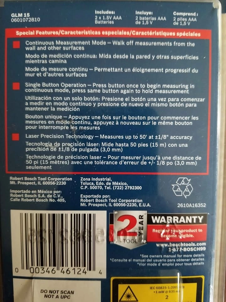 This is a brand new Bosch laser measuring device, package never opened. It has a very simple one-button operation and will measure up to 50 feet within an eighth of an inch. Great for contractors, Real Estate agents, or anyone who simply wants to measure room sizes or anything else instantly without a measuring tape or even going to the other side of the room. Priced to sell quickly. Located just North of the town of Winchester.