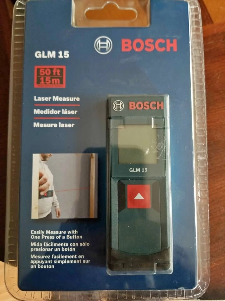 This is a brand new Bosch laser measuring device, package never opened. It has a very simple one-button operation and will measure up to 50 feet within an eighth of an inch. Great for contractors, Real Estate agents, or anyone who simply wants to measure room sizes or anything else instantly without a measuring tape or even going to the other side of the room. Priced to sell quickly. Located just North of the town of Winchester.