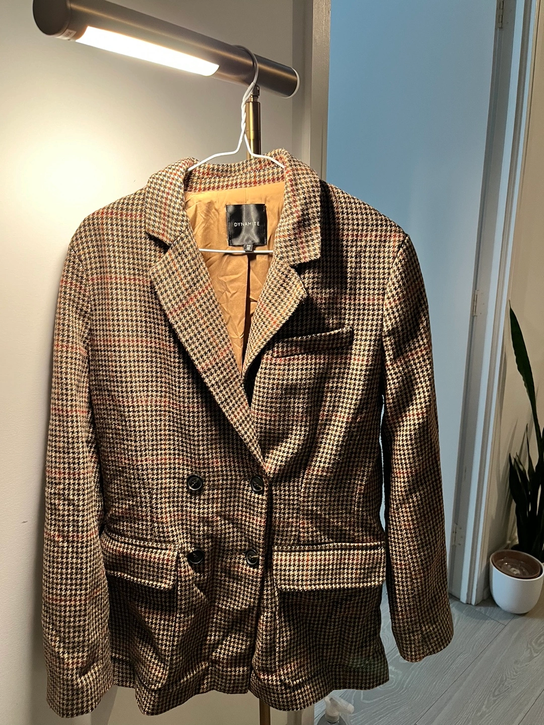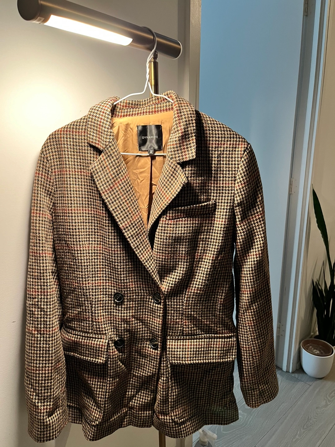 Dynamite Double-Breasted Houndstooth Blazer