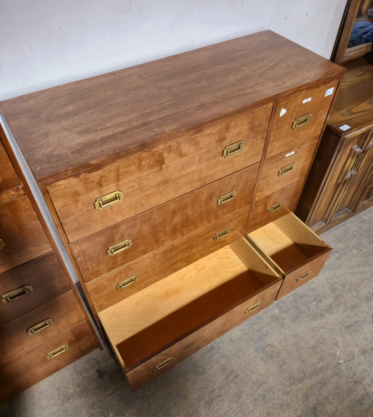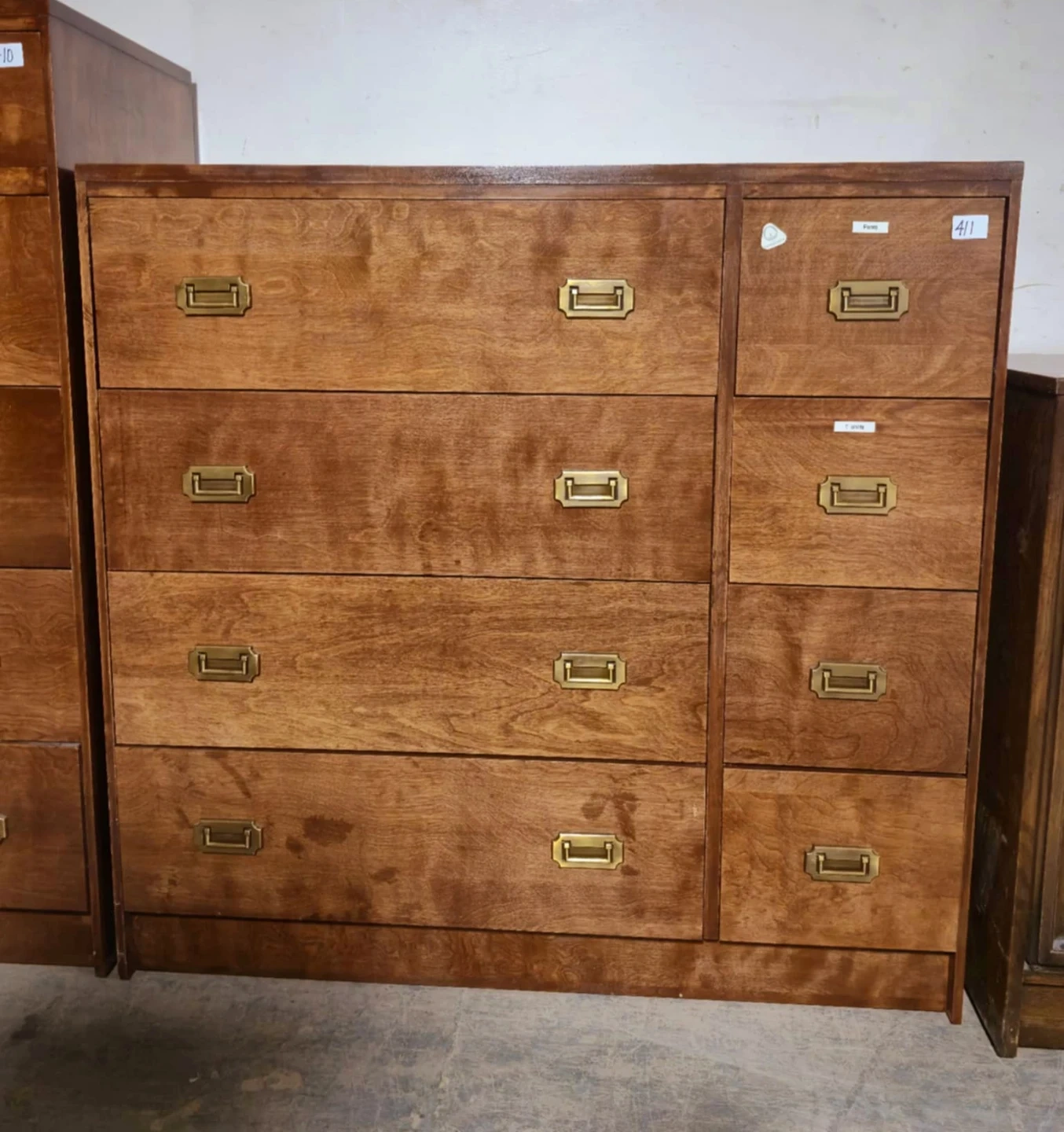 Solid Walnut 8 Drawer Tallboy Dresser With Brass Handles (Delivery Available)