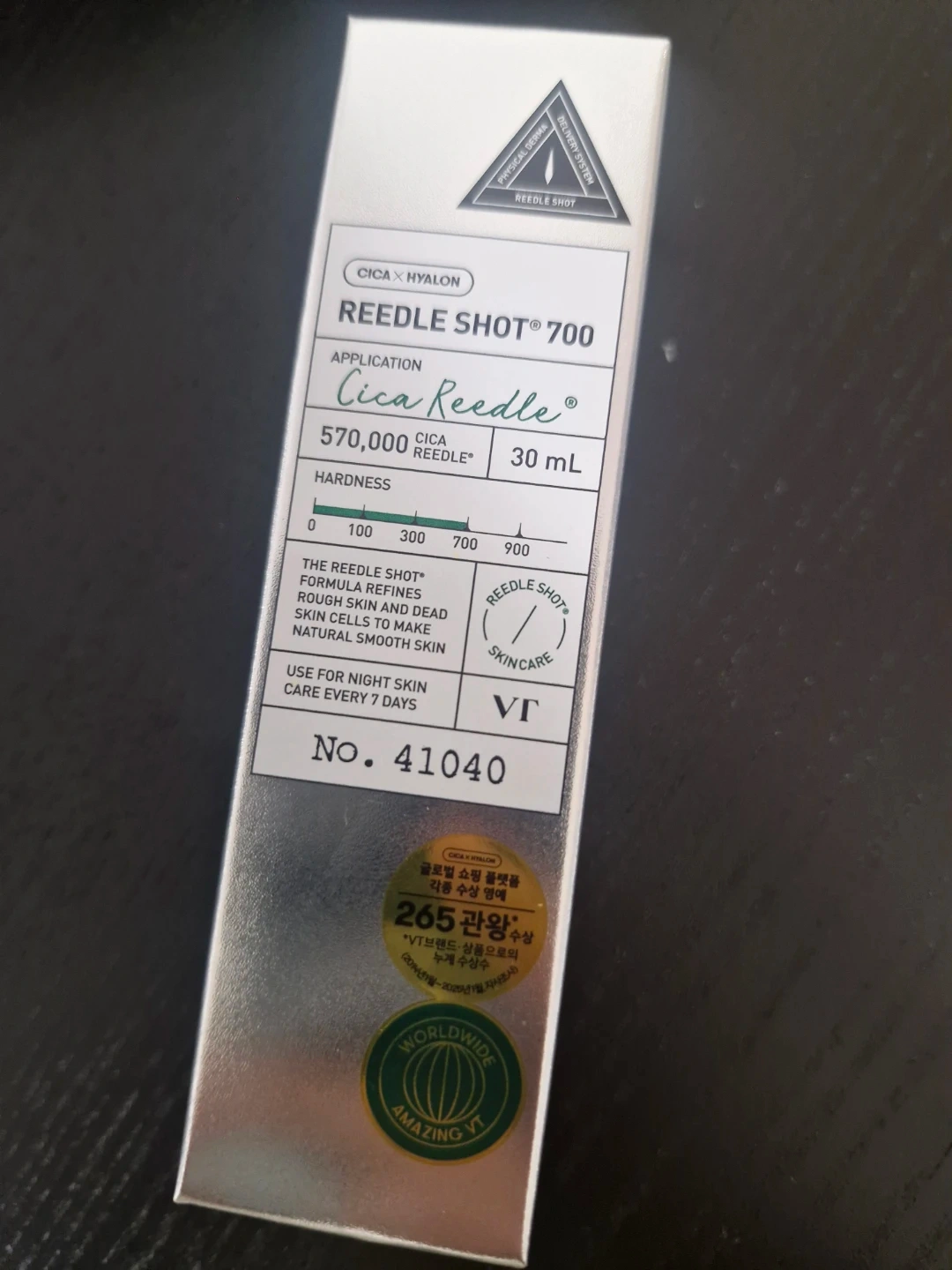 VT Cosmetics REEDLE SHOT 700 Cica Reedle Serum. Application for night skin care every 7 days. It's a 30 mL bottle with a hardness level of 700. Formula refines rough skin and dead skin cells for smoother skin.