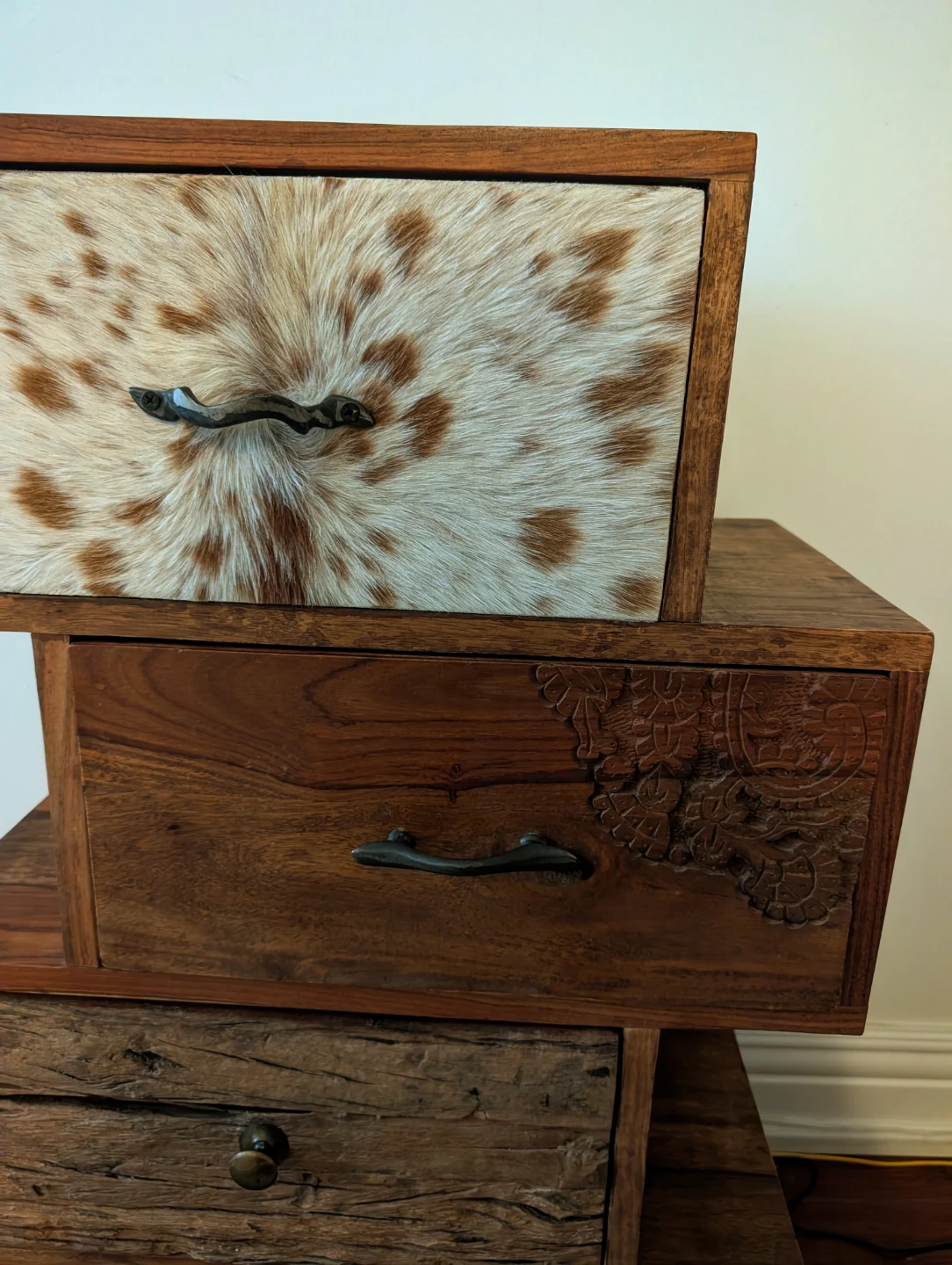 KARE Design Solid Wood Chest of drawers w/ genuine Cowhide