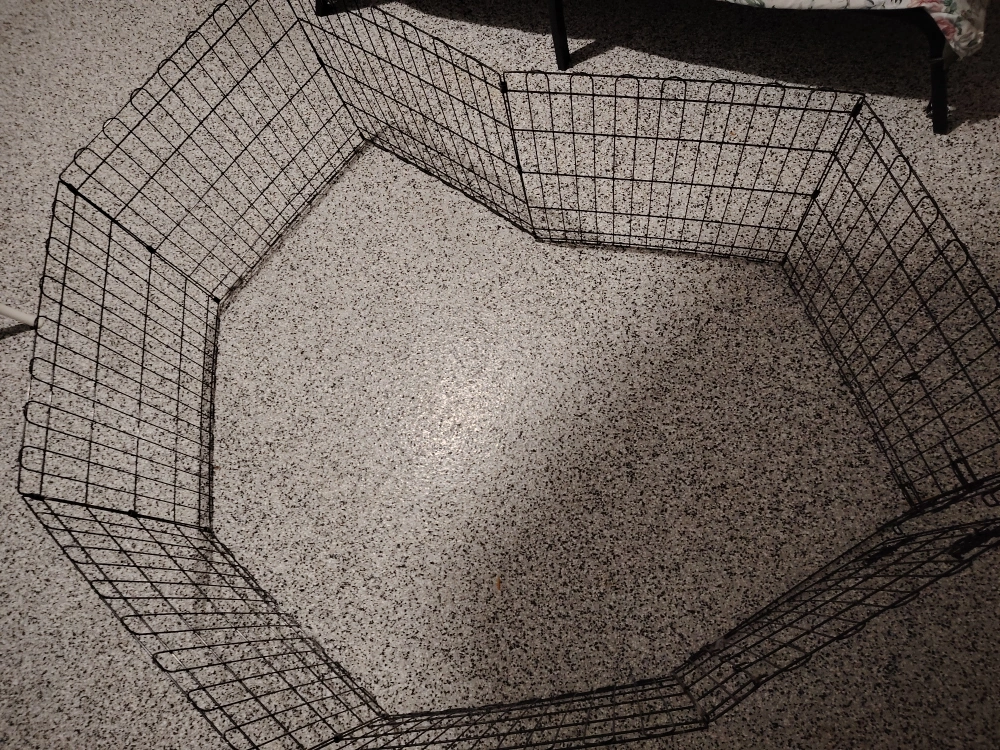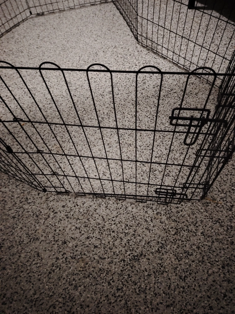 🥕Selling a foldable octagonal metal exercise playpen for puppies or dogs from Amazon Basics. It's suitable for indoor or outdoor use. It has a single door and is extra small, with 8 panels each measuring 24 x 24 inches. It's easy to assemble and store, and it's black