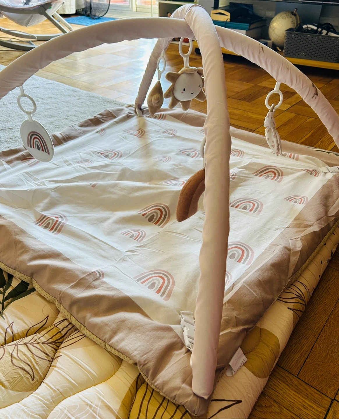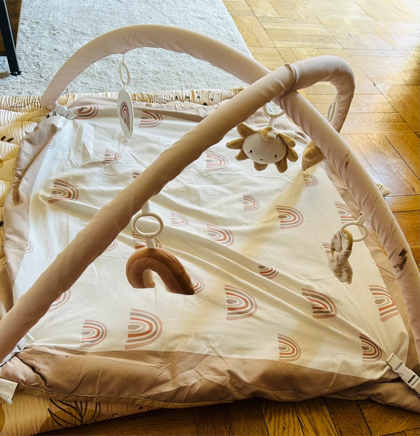 Buy & SellBaby Play Gym with RainbowsBaby Play Gym with Rainbows$17This baby play gym features a soft mat with a rainbow pattern. It includes an arch with several hanging toys. Great for baby's development!ConditionLike newAge0-2 yearsWHERE TO MEETCookies and Cream Pastry ShopView MapSELLERverifiedLaxmiKew Gardens650 reviews1 chats·0 favorites·6 viewsSEND CHAT TO SELLERHi Laxmi! I’m interested in your listing.Hi Laxmi! I’m interested in your listing.Get the Karrot app to chatSign In to chat