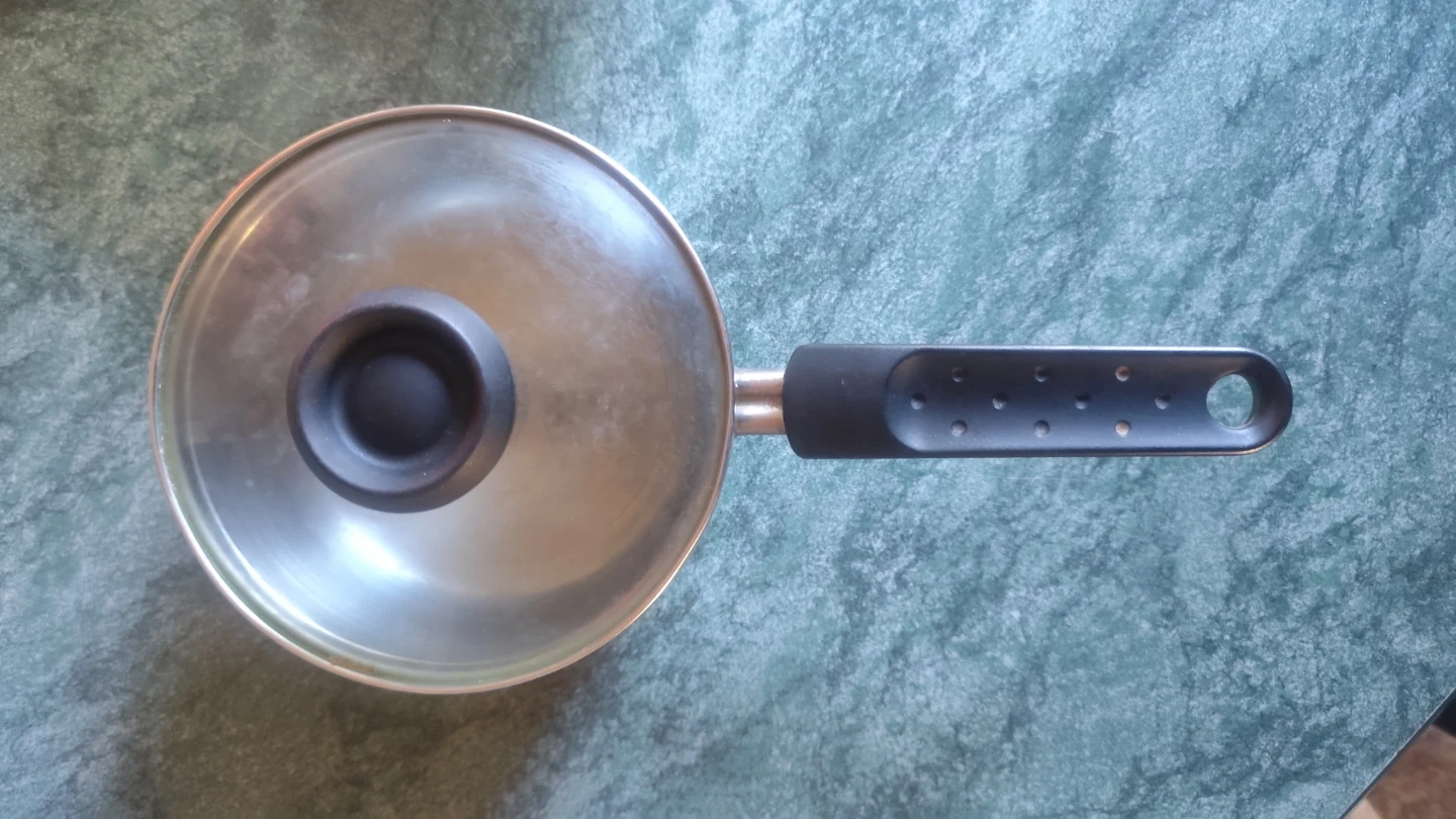 This is a stainless steel saucepan. It comes with a glass lid and has a black handle. It's suitable for everyday cooking needs.