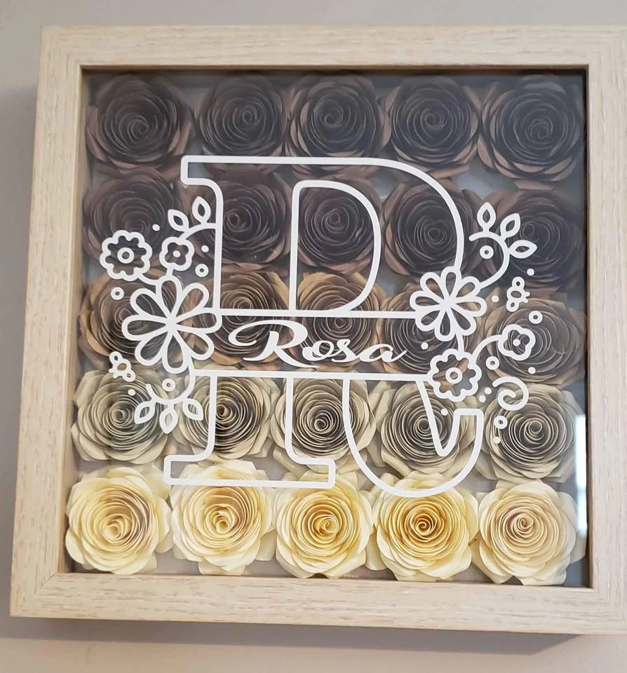 Custom Made to Order. Personalized flower shadow boxes. Pick a colour and name and I'll do the rest. Makes a great personalized gift for someone special.