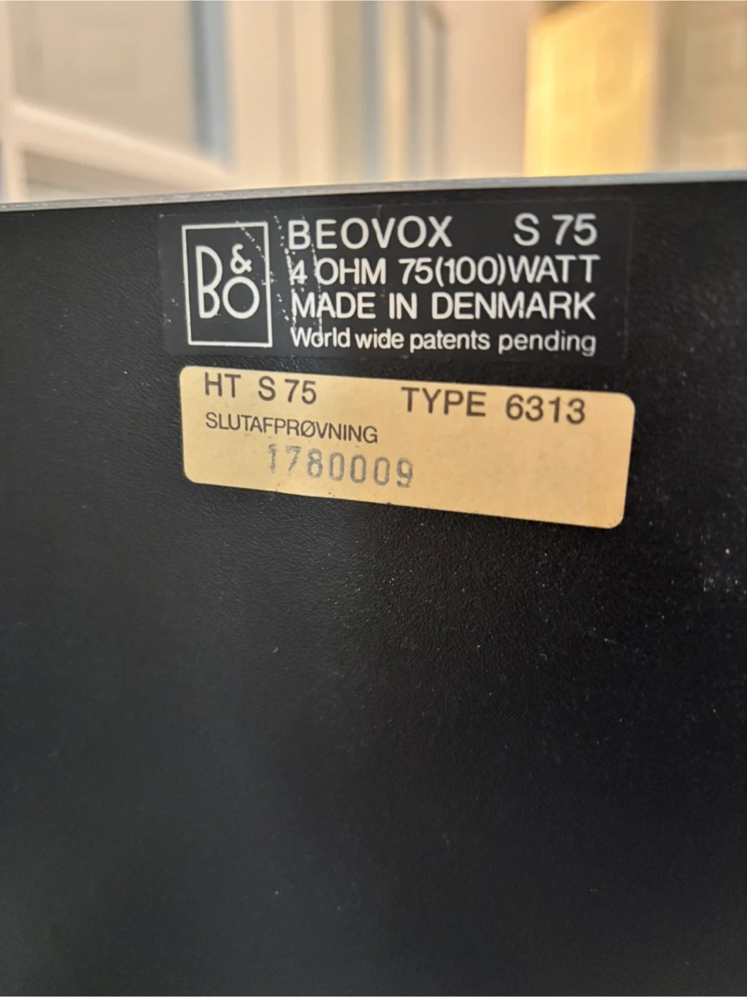 A pair of Bang & Olufsen Beovox S75 speakers.