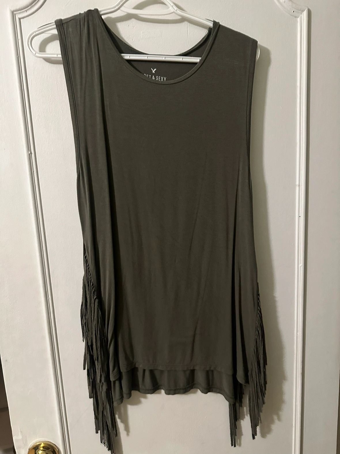 Buy & SellAmerican Eagle Soft & Sexy Tank TopAmerican Eagle Soft & Sexy Tank Top$5Green tank top with fringe detail. Size M/M.ConditionLike newSizeMediumWHERE TO MEETCheck LocationView MapSELLERPenKennedy Park16713 reviews1 chats·1 favorites·6 viewsSEND CHAT TO SELLERHi Pen! I’m interested in your listing.Hi Pen! I’m interested in your listing.Get the Karrot app to chatSign In to chat