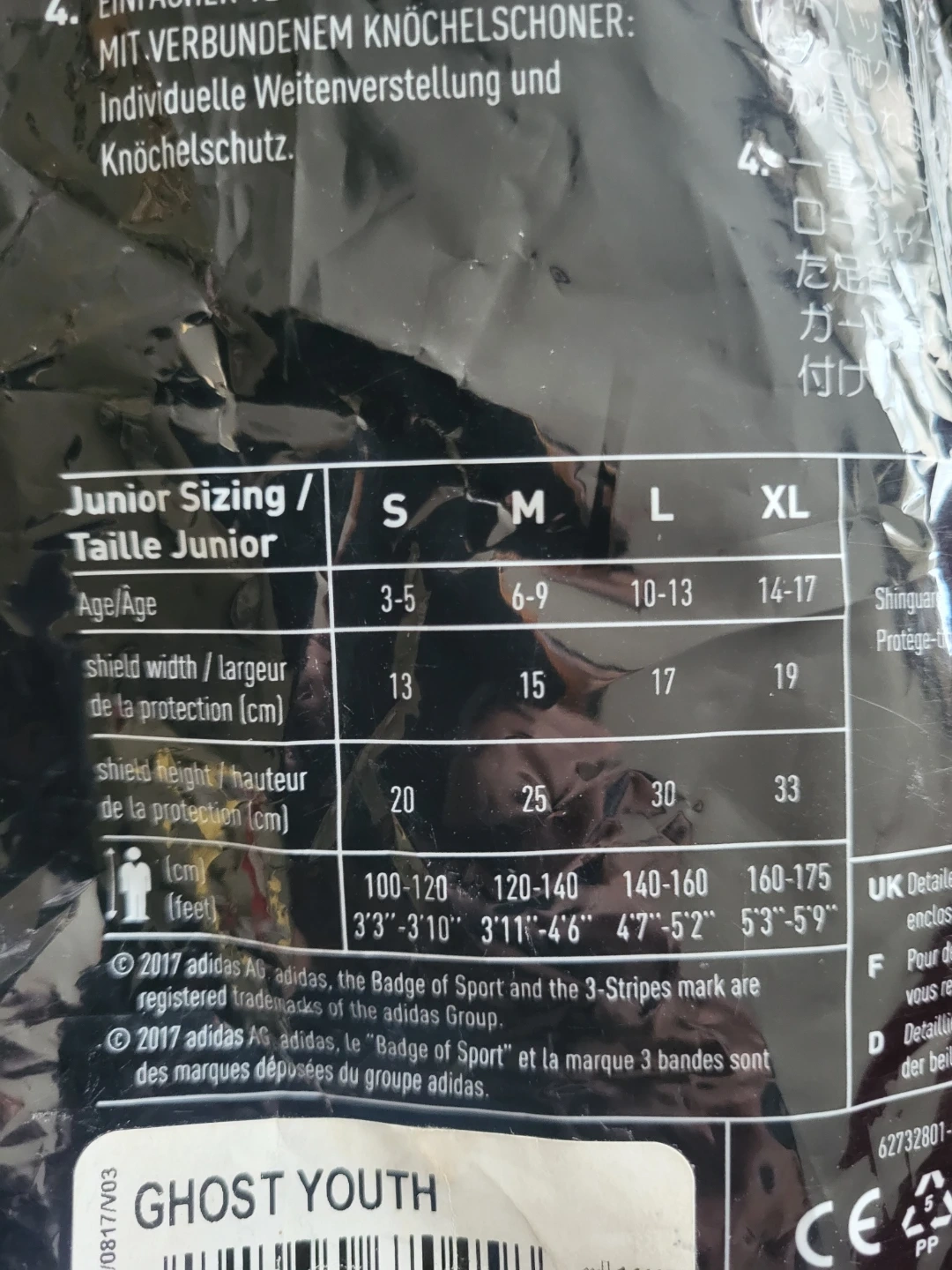 Adidas Ghost Youth Shin Guards Size L