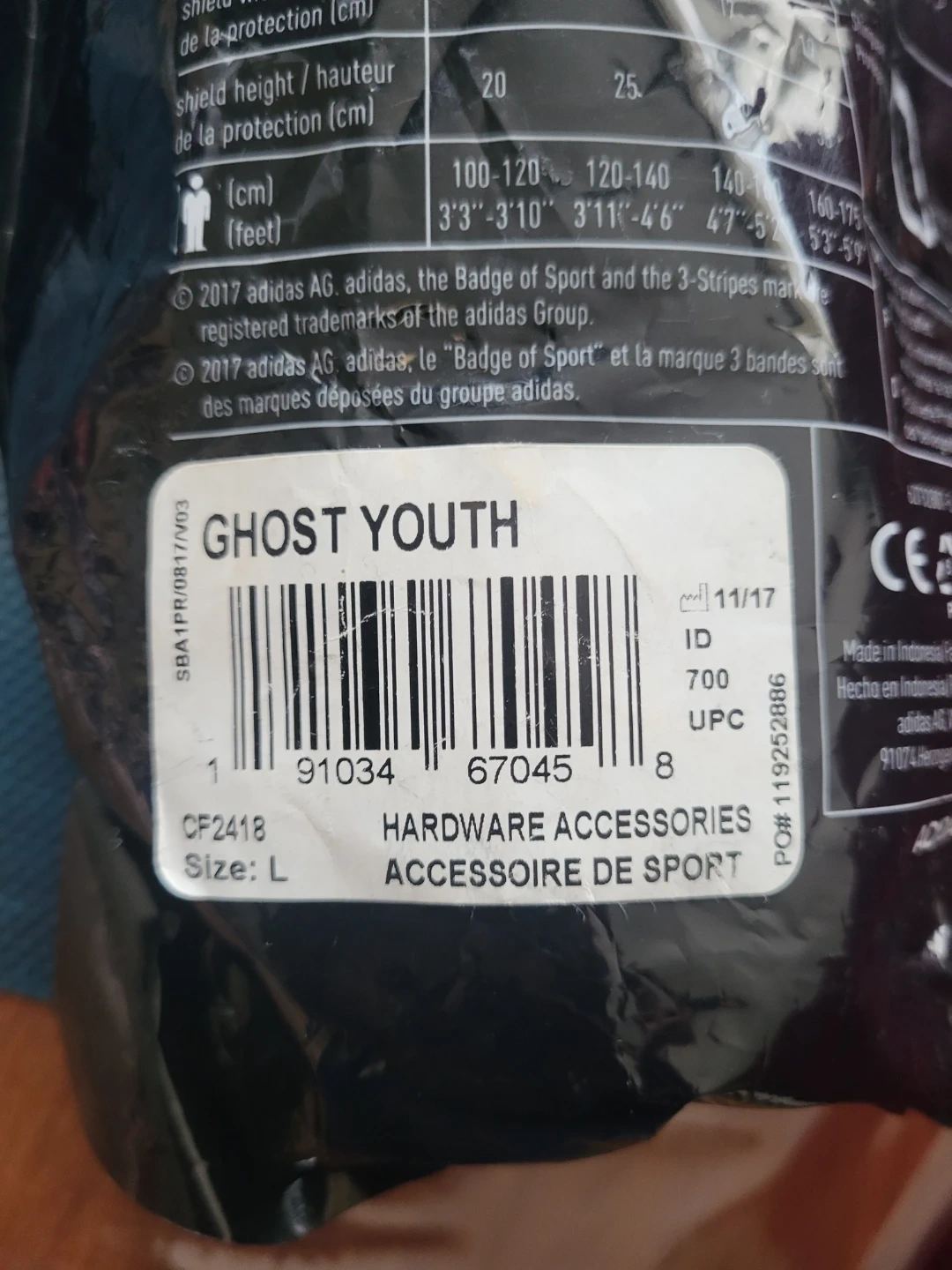 Adidas Ghost Youth Shin Guards Size L