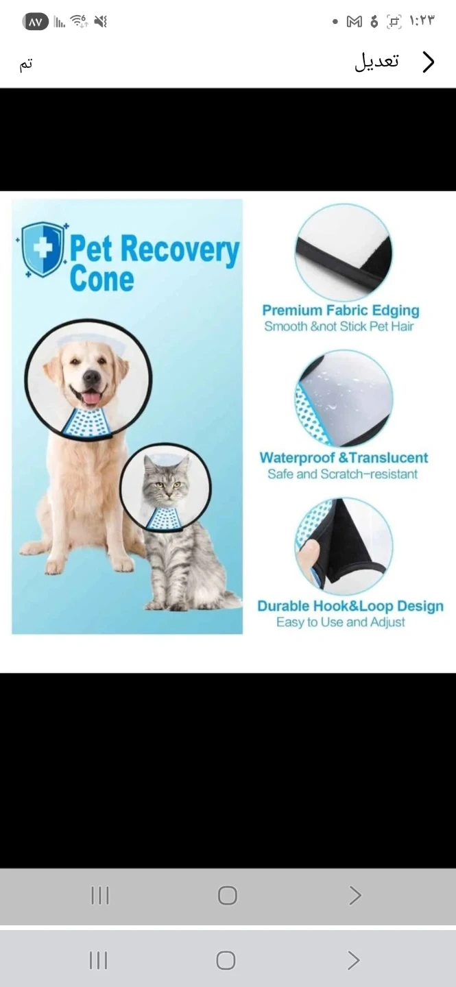 Selling a Gsevyon Ultra Premium 900D pet recovery cone. This cone is designed to provide high-quality pet supplies and services. It has soft edges, is water resistant, and durable. The cone also features a pick-up shape for added convenience.