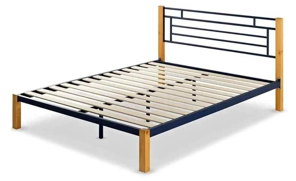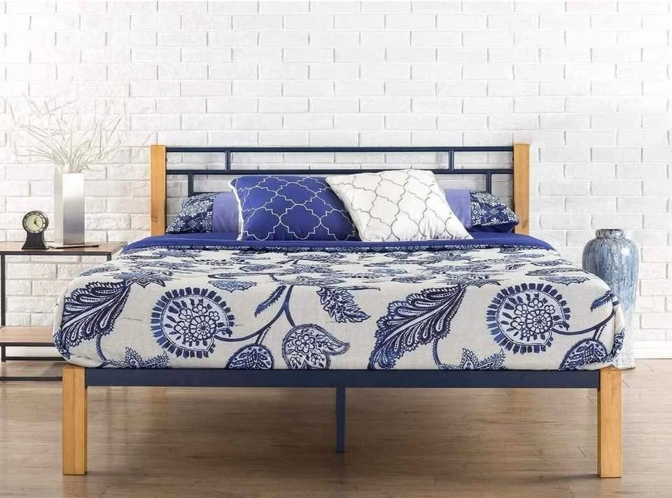 79Brand new bed in original box with all parts for easy assembly. Retails at Amazon for $404 ($358 + tax). Save your money. *Only the bed frame for sale. Mattress not included. Zinus Epic Metal & Wood Platform Bed with Wood Slat Support, Queen Product details: Size: Queen Material: Alloy Steel Product Dimensions: 2.07L x 1.52W x 0.91H Meters Style: Modern Special feature: Durable Item model number HBPBE-14Q Item Dimensions: L x W x H: 81.5 x 60 x 36 inches Contemporary styling in navy metal and pine wood Strong steel frame with wood slat support Quick and easy assembly with mattress sold separately 10 inches of clearance under the frame for valuable under bed storage space